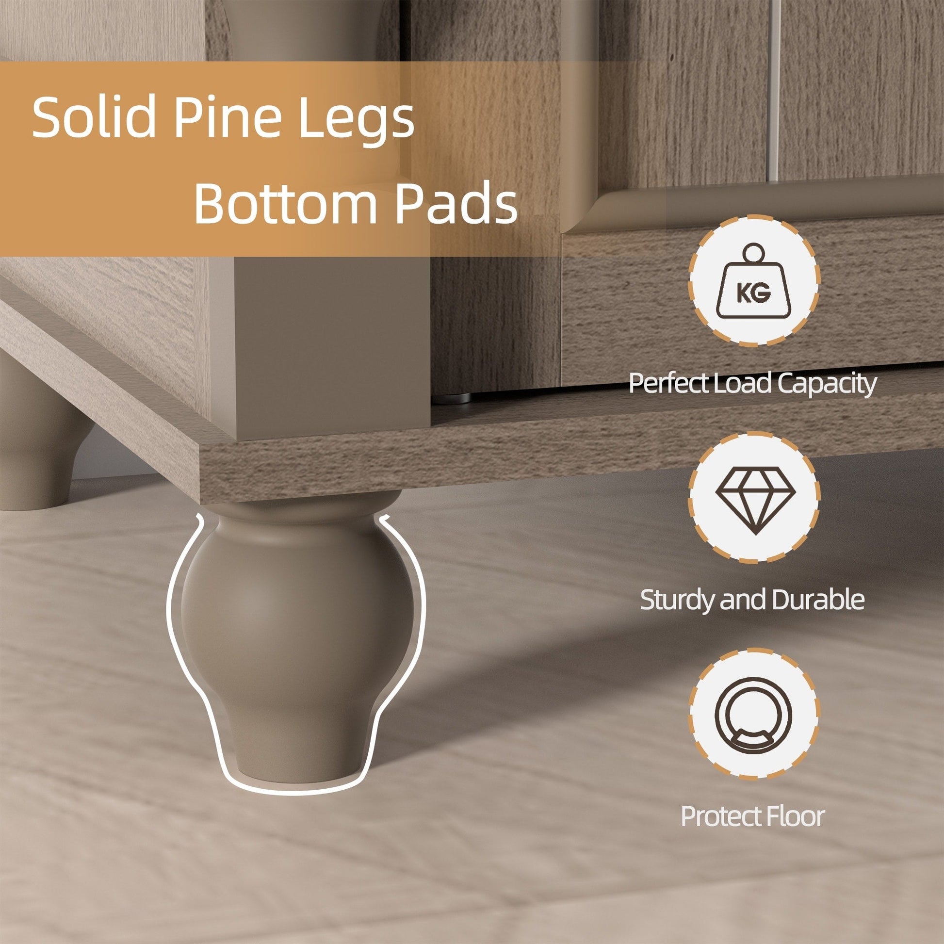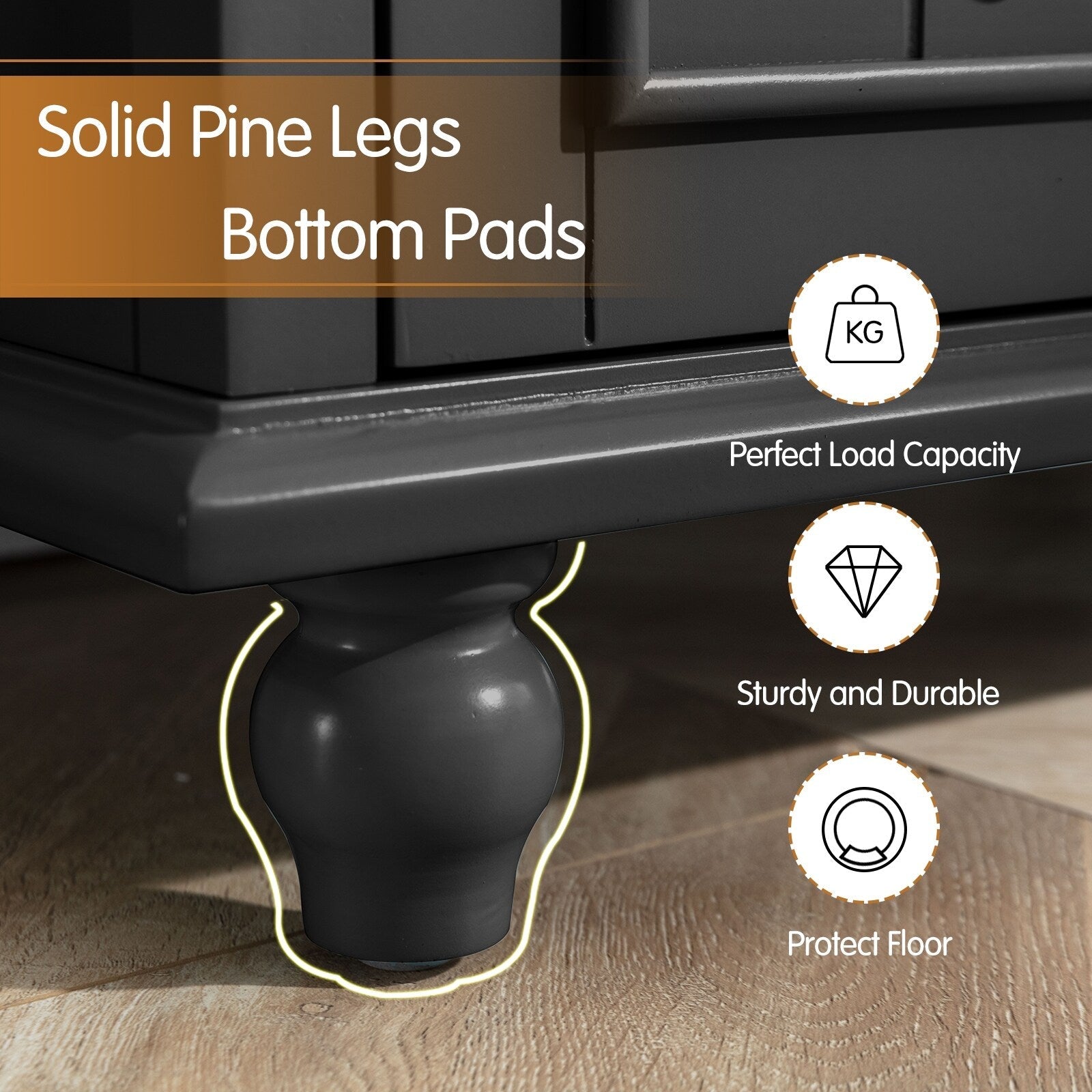 - Grâce à sa structure robuste en MDF et à ses pieds en bois, ce meuble supporte une charge importante. Il est résistant à l'eau et aux rayures. Son socle surélevé le protège des dégâts causés par l'humidité.