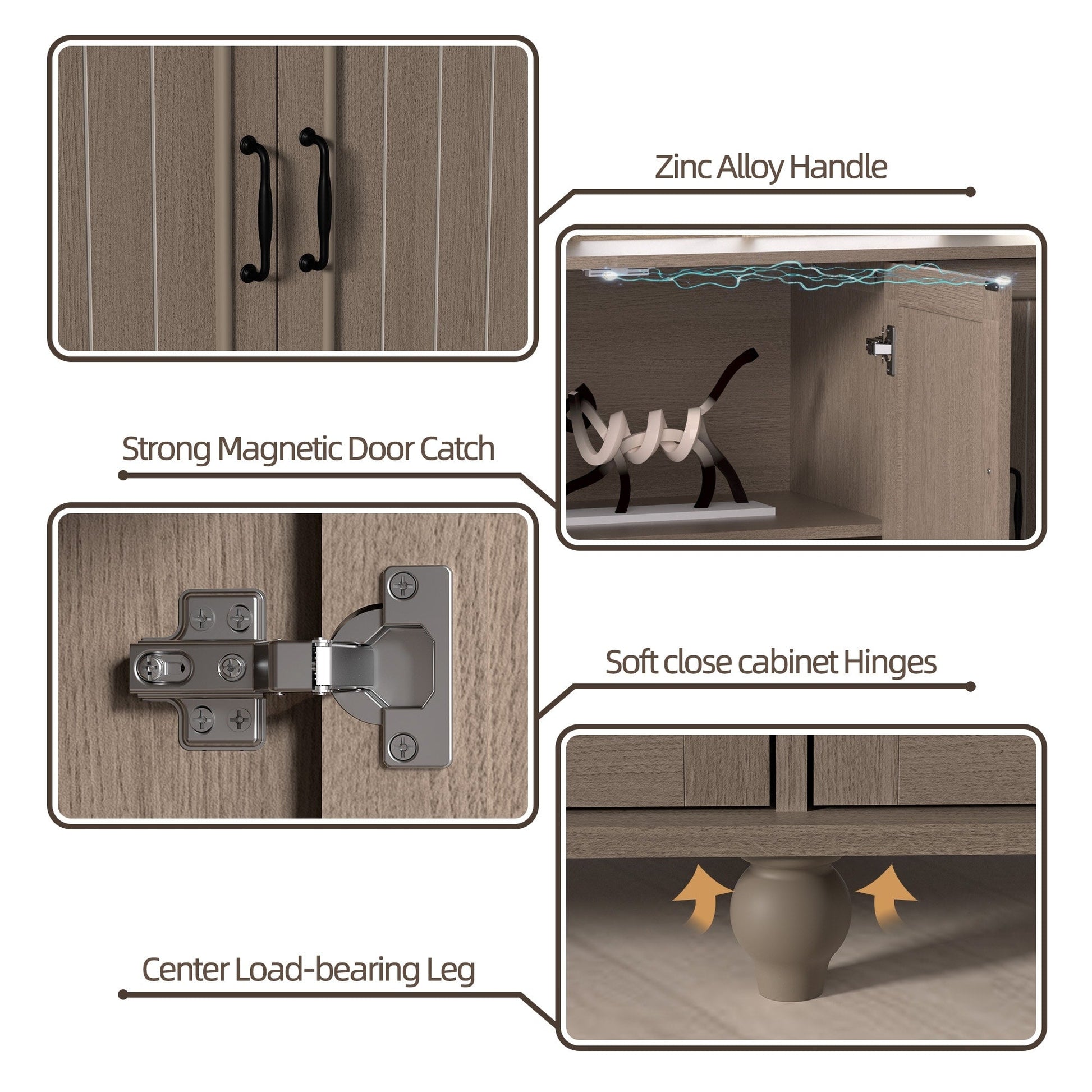 Ce buffet sera un excellent choix pour votre maison. Fabriqué en MDF avec des pieds en bois, il est durable et résistant à l'eau. Ce meuble comprend quatre portes pouvant accueillir votre vaisselle et autres petits objets. Vous pouvez également retirer l'étagère pour ranger des articles plus volumineux. Rester organisé n'a jamais été aussi simple.