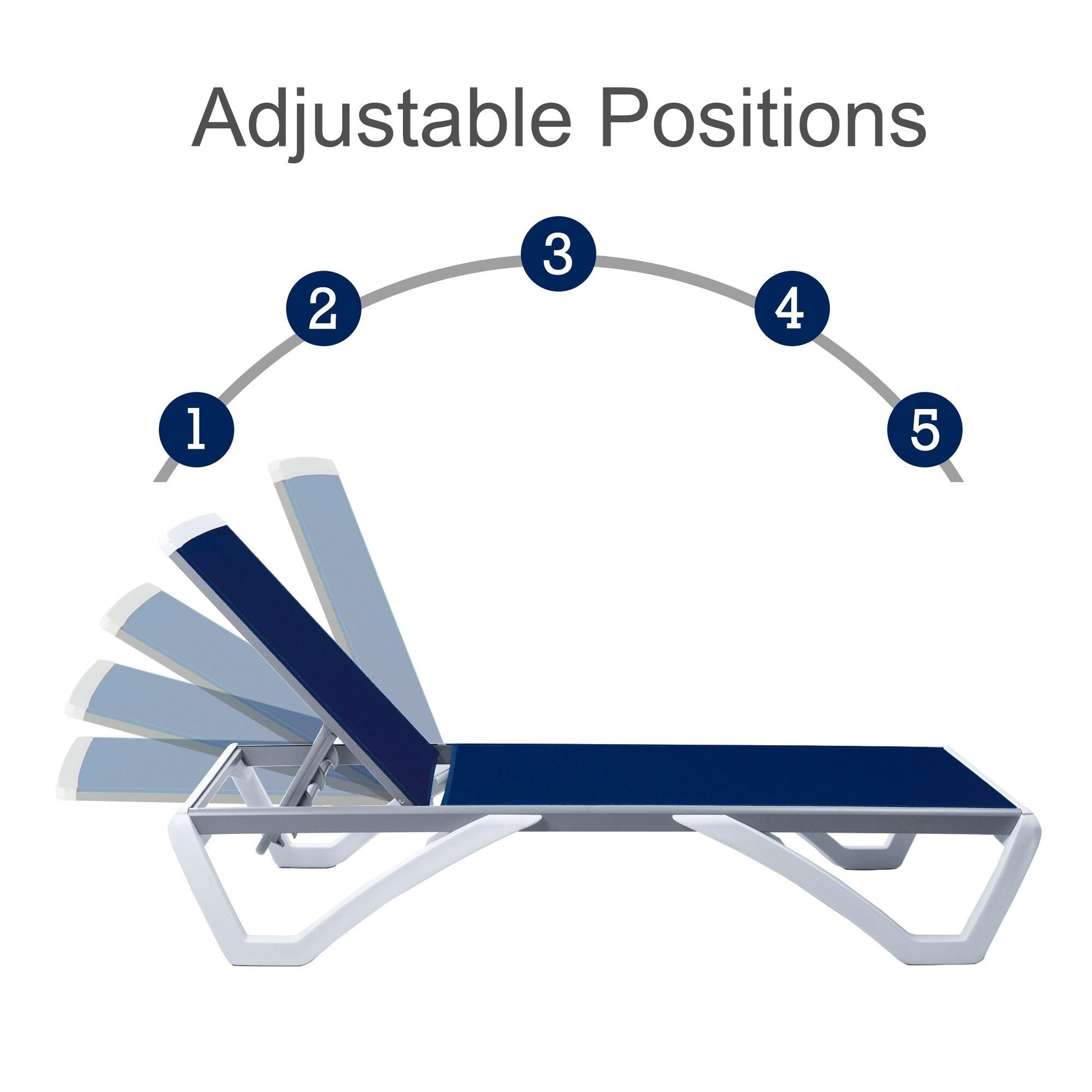 - CONFORTABLE : La toile épouse les formes du corps et ses alvéoles permettent une bonne aération même par forte chaleur. Le dossier réglable offre cinq niveaux de confort personnalisés ; vous pouvez même vous allonger sur le ventre pour profiter du soleil.