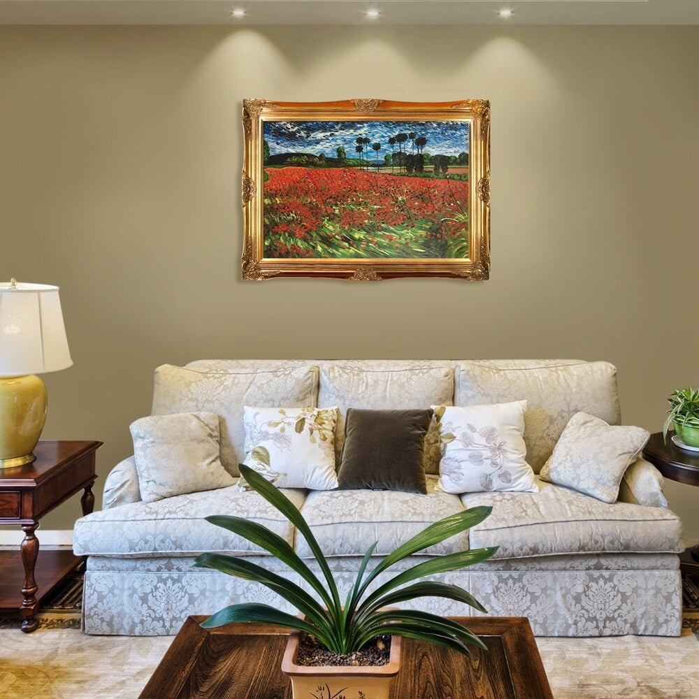 La reproduction à l'huile du pastiche « Champ de coquelicots » de Vincent Van Gogh, peinte à la main