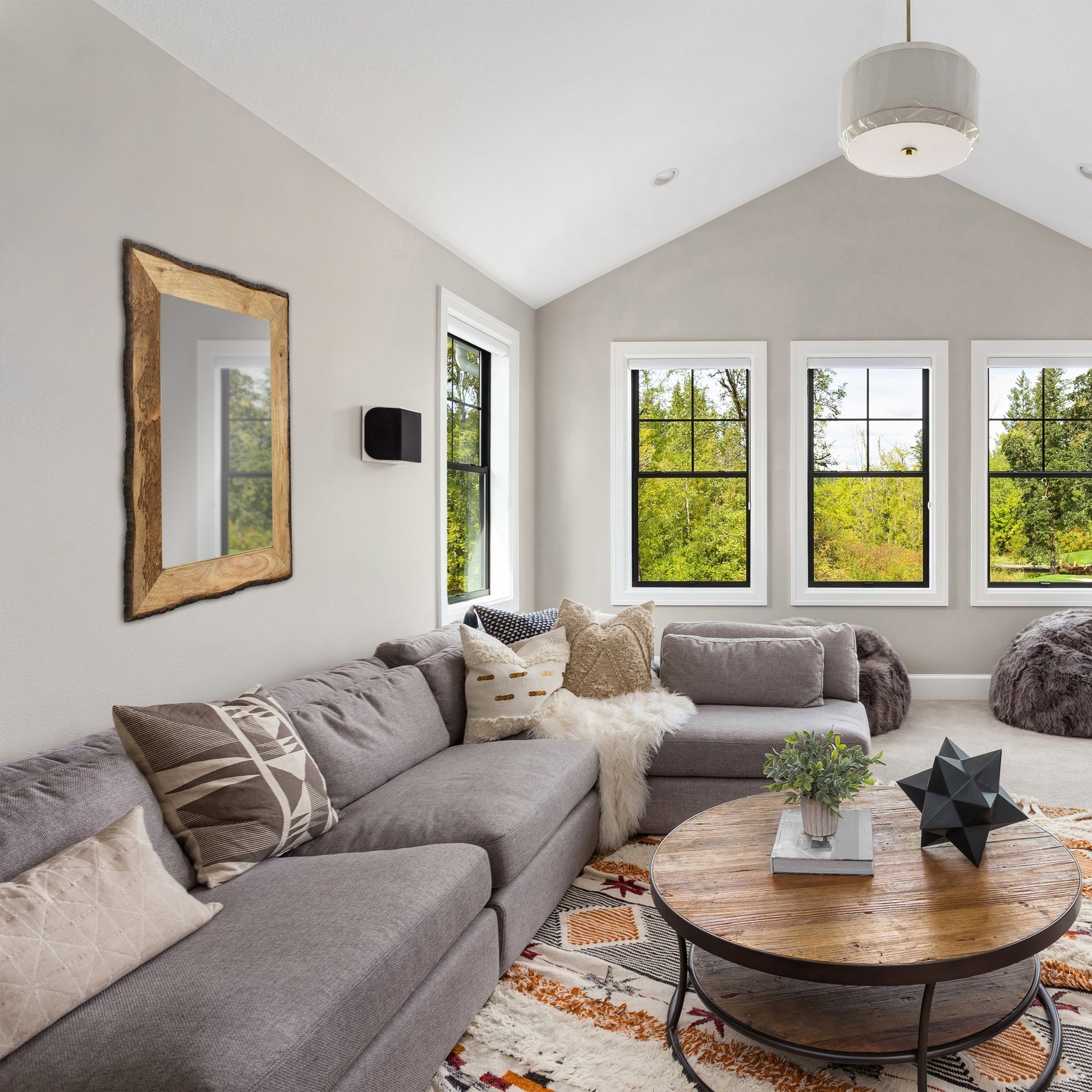 - Périmètre en bois brun texturé et contour en bois beige lisse autour du verre