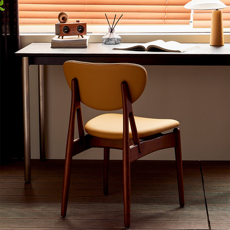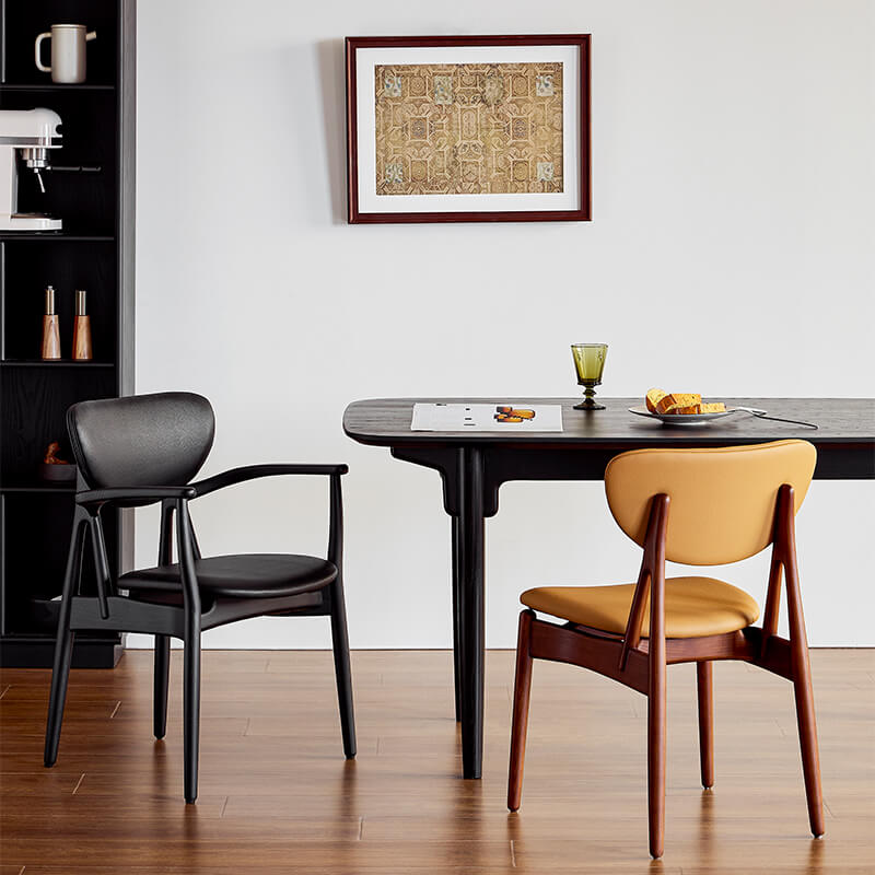 Par rapport aux chaises de salle à manger normales , nous avons ajouté un support triangulaire robuste supplémentaire au montant . assurant une stabilité accrue du cadre . Deux barres latérales ajoutent un soutien vertical et horizontal , rendant la chaise de salle à manger encore plus robuste .
