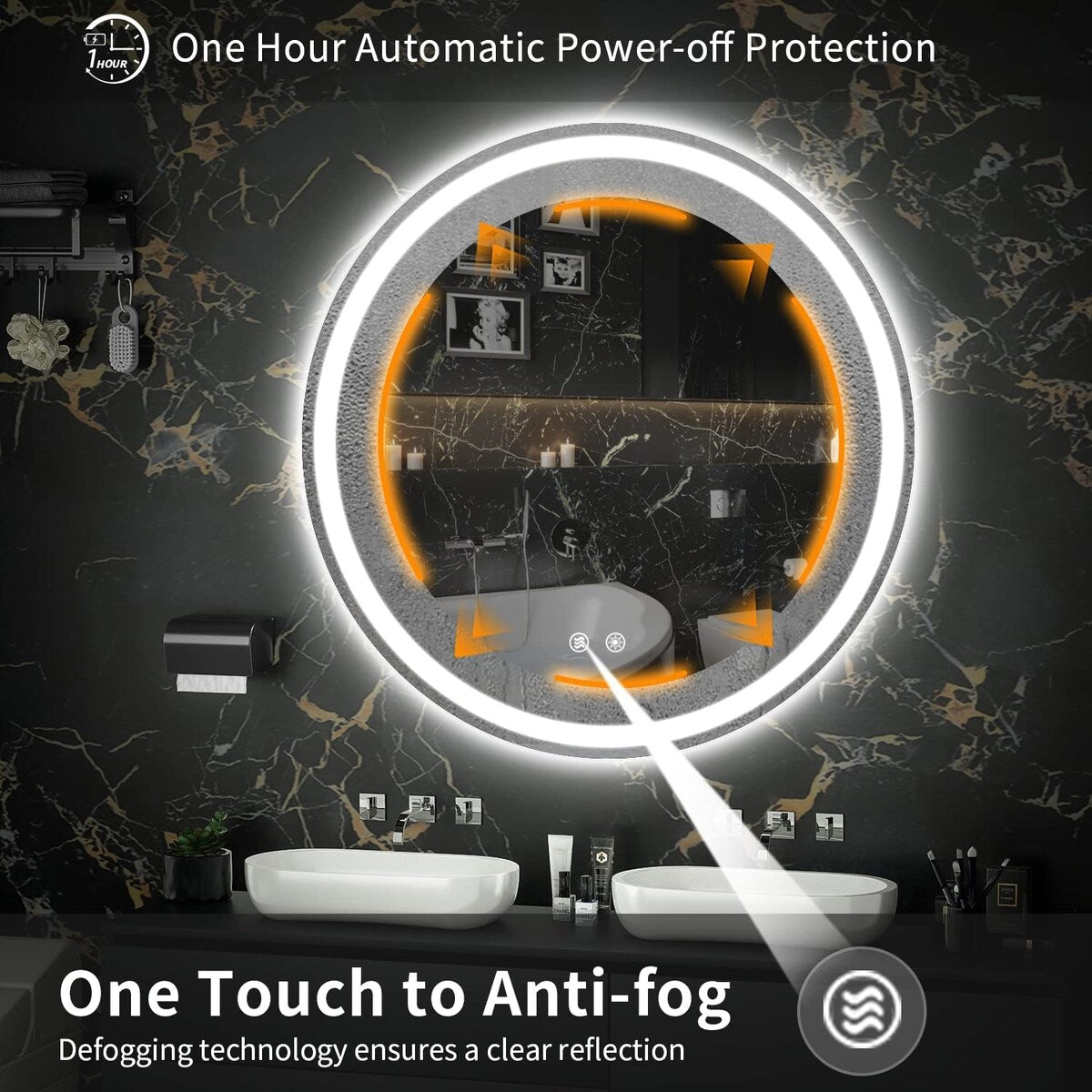 - Fonction mémoire : Lorsque le miroir de salle de bain LED est redémarré après une coupure de courant, il reprend automatiquement ses derniers réglages sans qu'il soit nécessaire de le paramétrer.