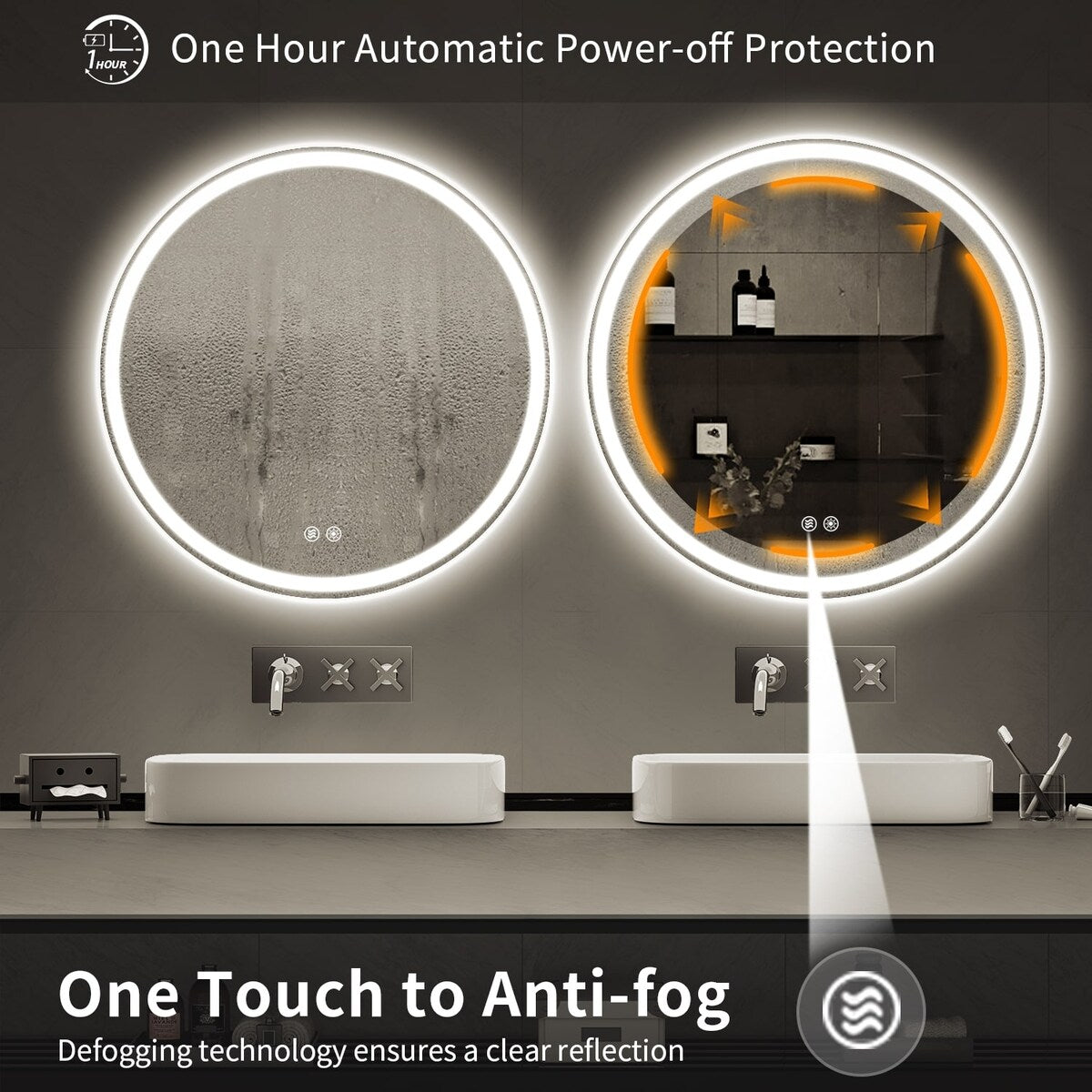 Miroir de courtoisie arrondi sans cadre, éclairé par LED, à intensité variable et antibuée
