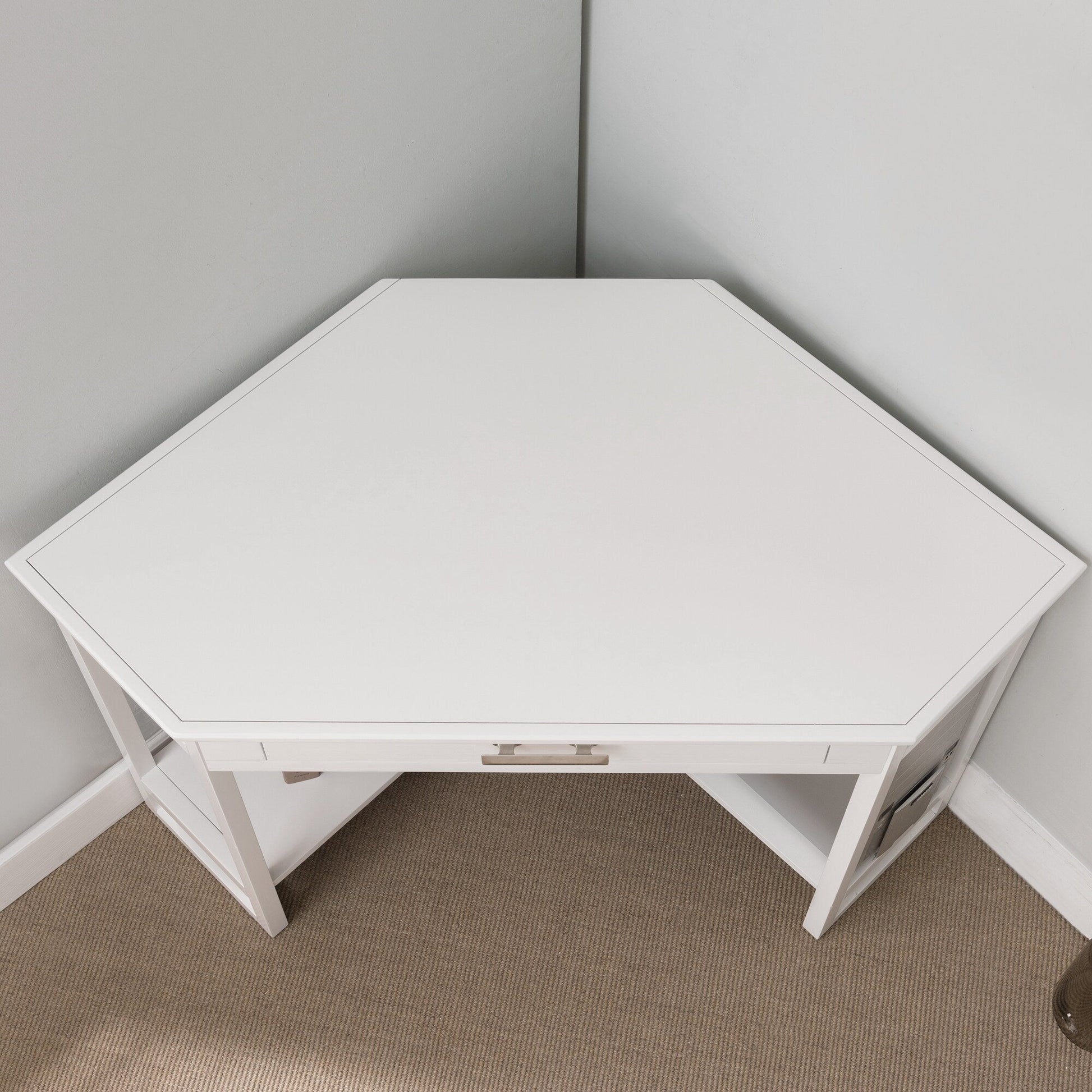 - Construction en bois massif : Grâce à sa construction robuste en bois massif, ce bureau d'angle polyvalent vous accompagnera pendant de nombreuses années.