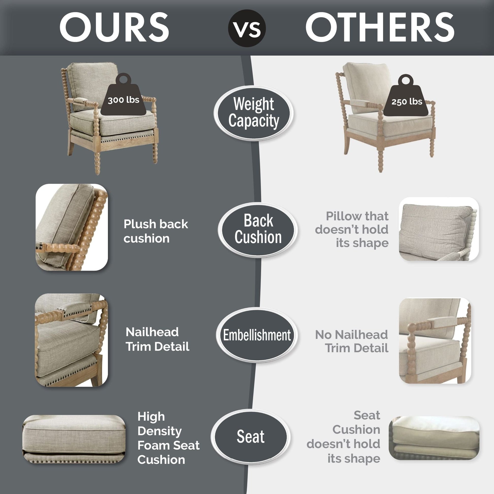 - Conçu pour durer grâce à une structure en bois massif, une mousse haute densité et des sangles pour une durabilité accrue