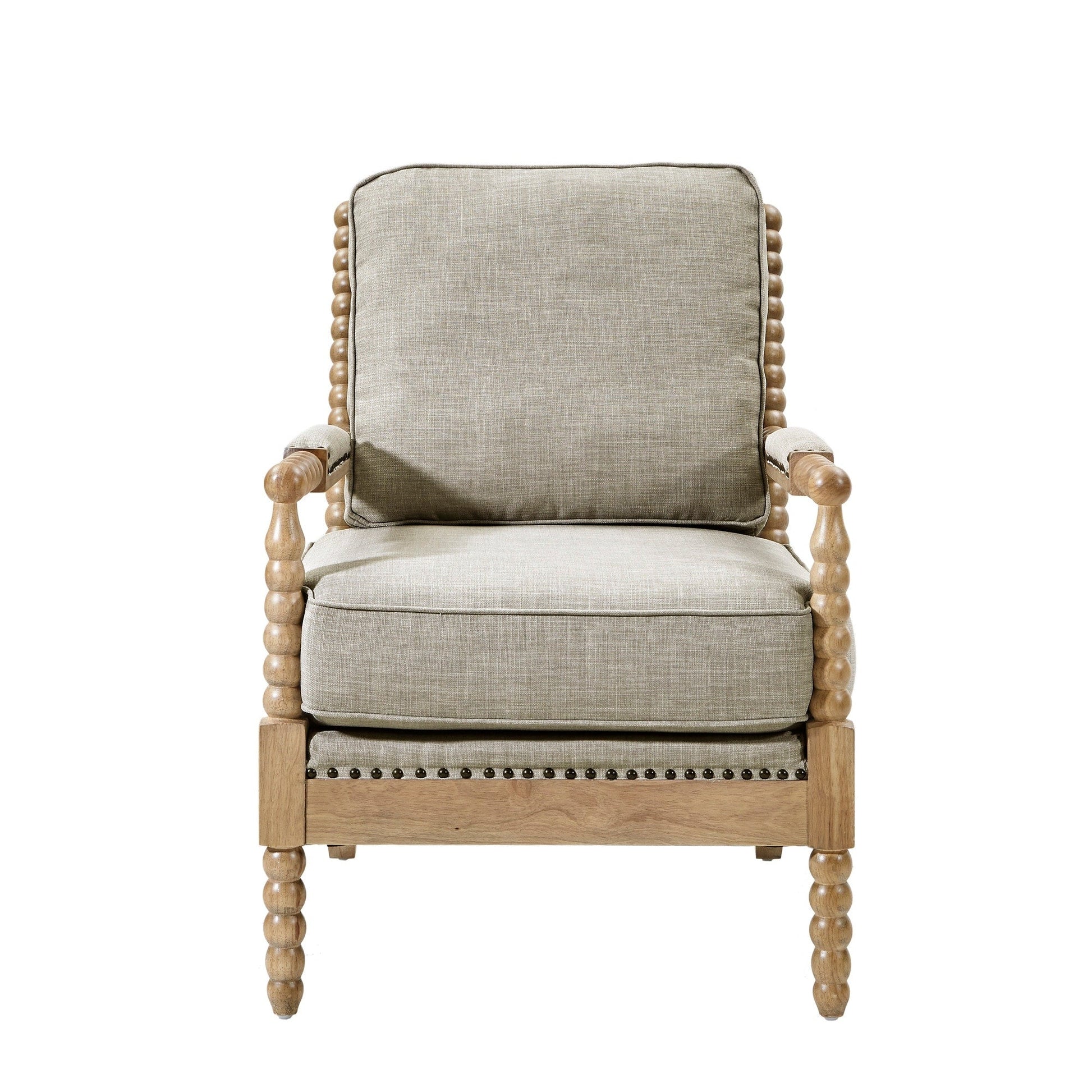 Sublimez votre intérieur avec le fauteuil en bois Madison Park Donohue, un parfait mélange de charme classique et de confort moderne. Doté d'un dossier ajouré à barreaux et de détails en bois tourné, ce fauteuil d'appoint dégage un charme intemporel. Son revêtement en tissu à tissage serré lui confère une grande durabilité tout en résistant au boulochage, tandis que son assise moelleuse en mousse multicouche assure un soutien durable. Les accoudoirs rembourrés offrent un confort supplémentaire, et les clous décoratifs en bronze apportent une touche raffinée. Ce fauteuil d'appoint polyvalent trouvera sa place dans votre salon, votre chambre ou votre coin lecture. Complétez votre décoration avec ce fauteuil intemporel dès aujourd'hui !