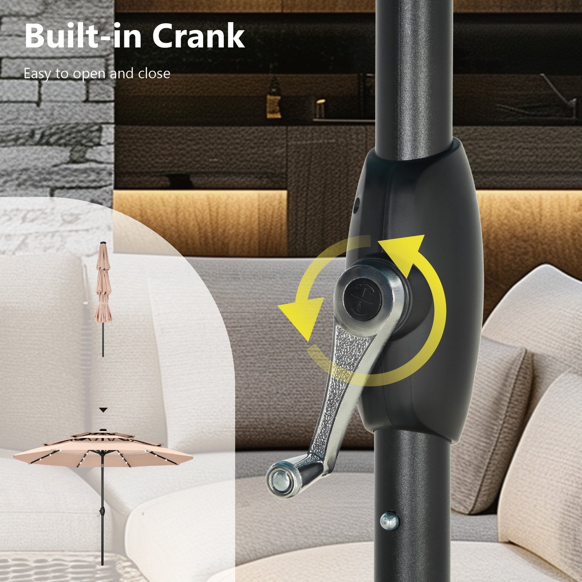 Parasol de terrasse MAISON ARTS de 3 m (10 pi) à 3 niveaux, à inclinaison automatique, double ventilation et éclairage LED