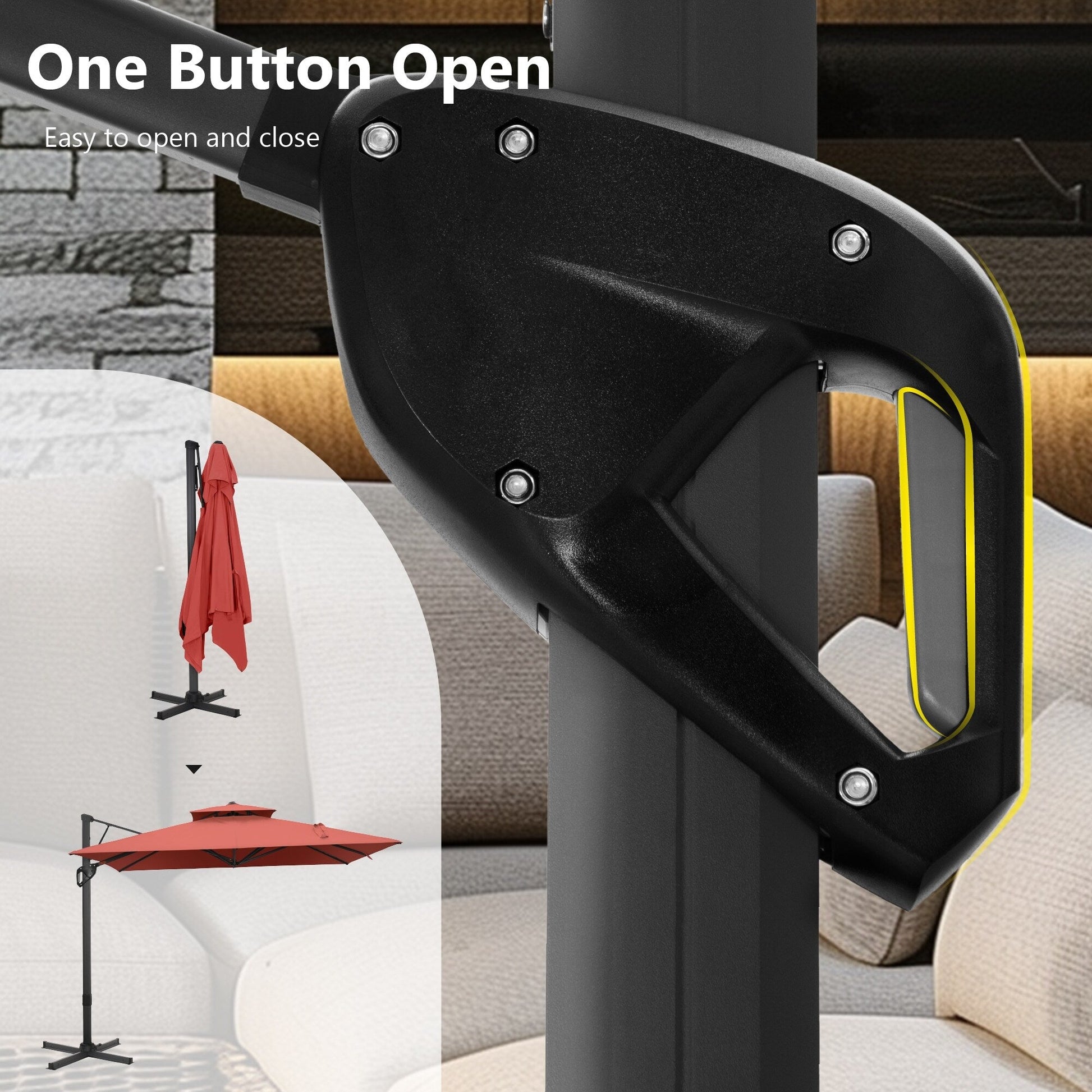 1. Sa conception hydraulique permet une ouverture et une fermeture faciles grâce à un mécanisme de type « pousser-tirer », plus pratique qu’une ouverture manuelle traditionnelle. Elle est dotée d’une poignée ergonomique sur les baleines pour une utilisation aisée.