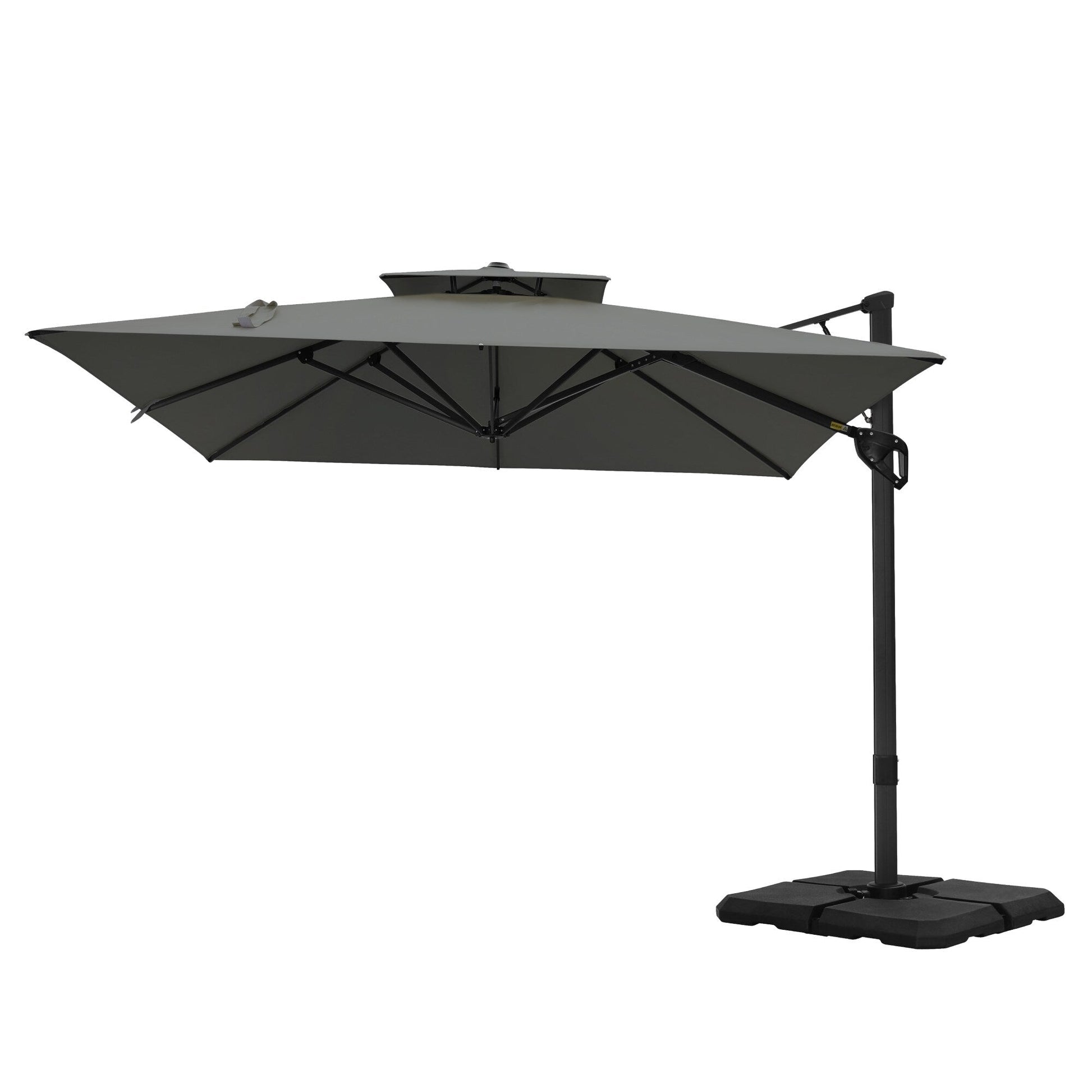 3. Doté d'un moyeu rotatif à 360 degrés, ce parasol peut pivoter librement sans que sa base ne soit déplacée. Il permet d'ajuster la zone d'ombrage par simple rotation de la base.