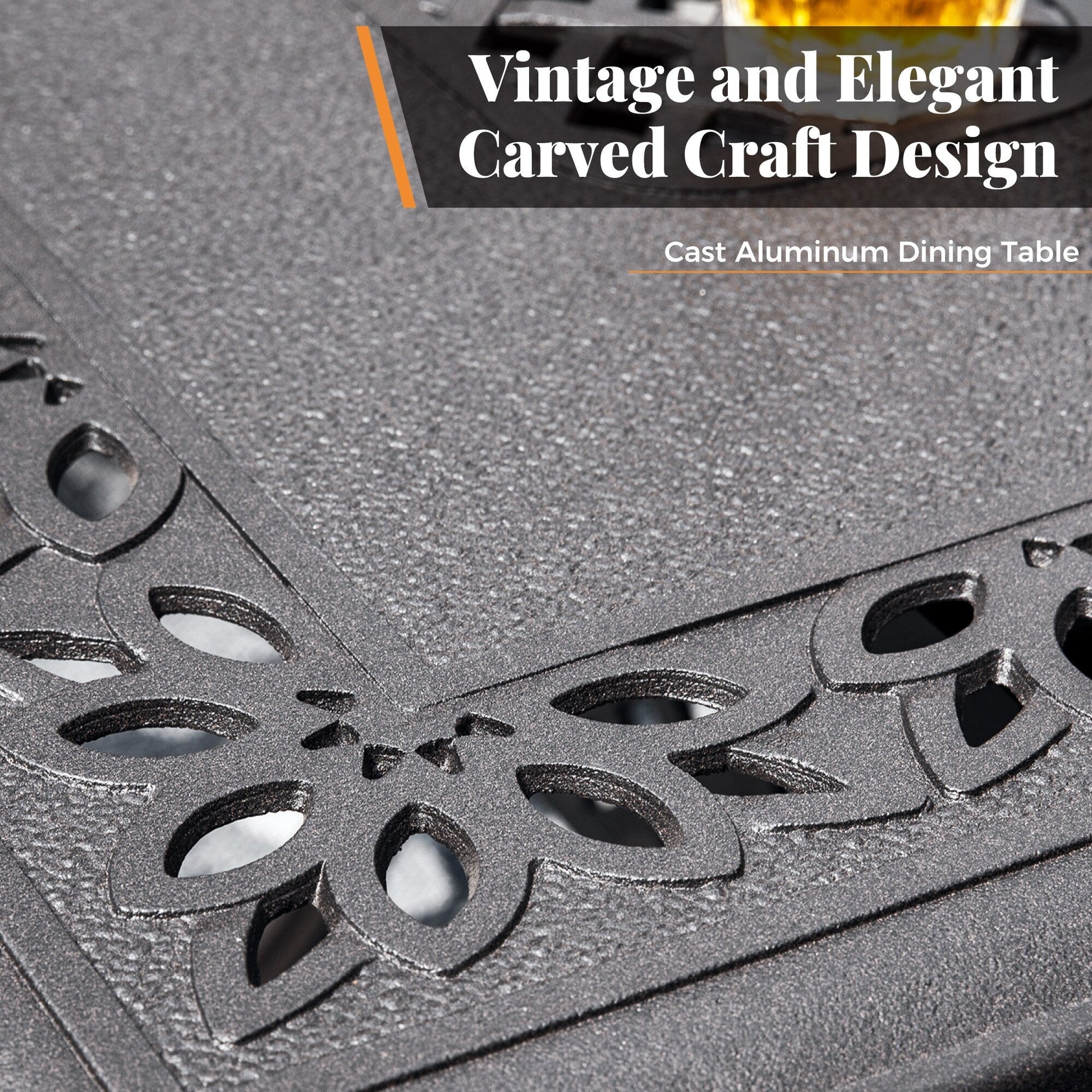Ensemble de salle à manger d'extérieur MAISON ARTS 7 pièces en fonte d'aluminium avec table rectangulaire extensible et 6 chaises en fonte d'aluminium