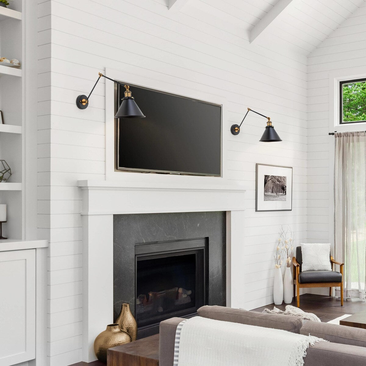 Ensemble de 2 appliques murales modernes à bras articulé réglable Malryn, à brancher ou à câblér