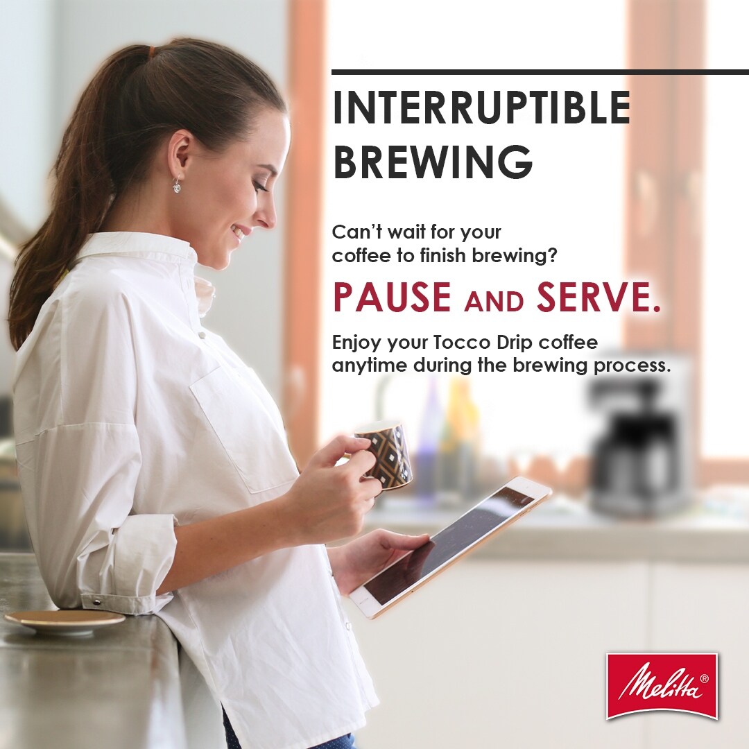 Du remplissage du réservoir d'eau à votre première gorgée, la cafetière à filtre Melitta® Aroma Tocco™ avec carafe isotherme vous permet de savourer pleinement la préparation de votre café. Compacte et élégante, cette machine prend peu de place dans les cuisines de toutes tailles. Son grand écran LED lumineux et ses commandes tactiles s'adaptent à vos besoins et à votre environnement ; sans boutons physiques susceptibles de retenir la saleté, elle est simple d'utilisation et facile à nettoyer.