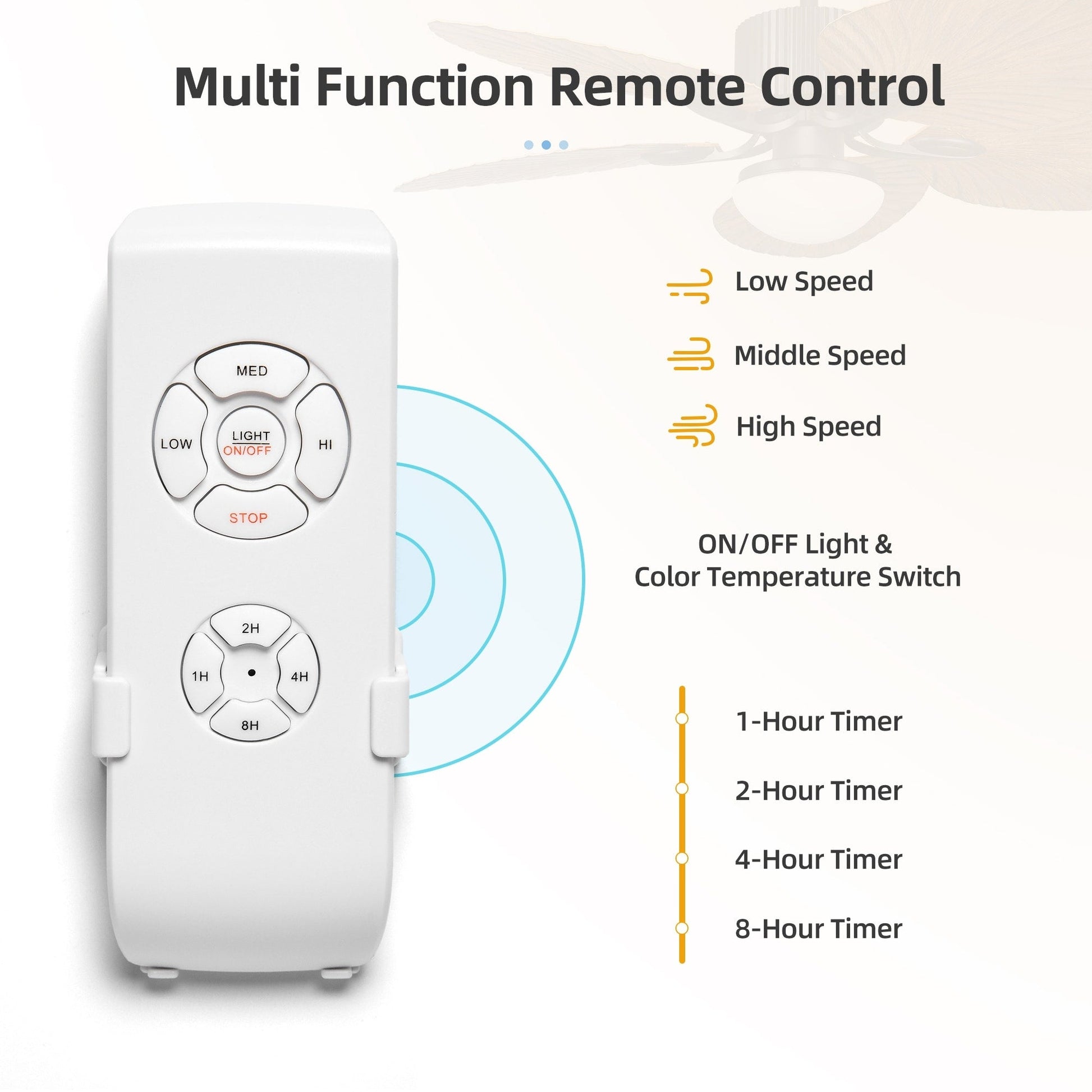 Ventilateur de plafond Moasis 52 à motif feuilles de palmier avec éclairage, style tropical et télécommande