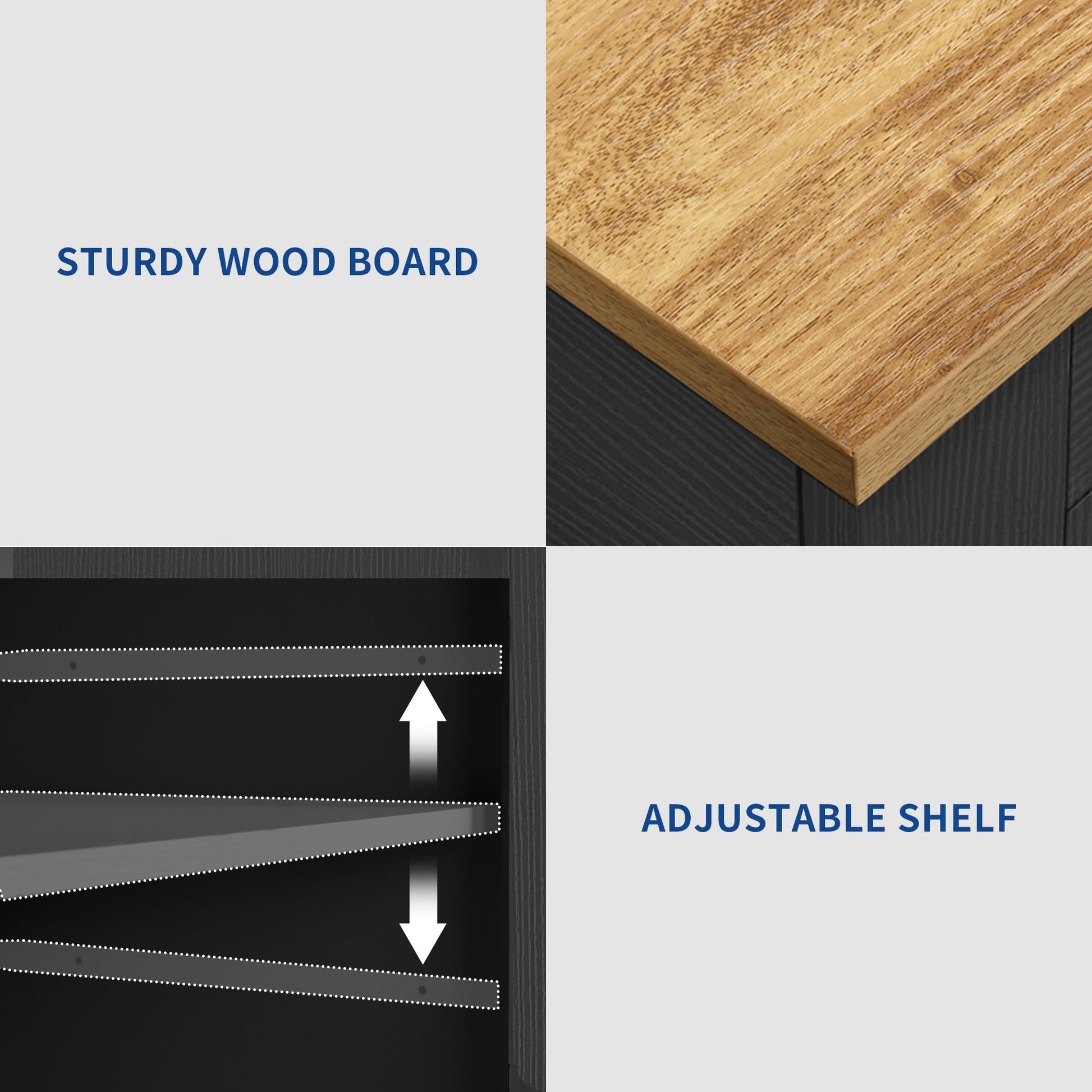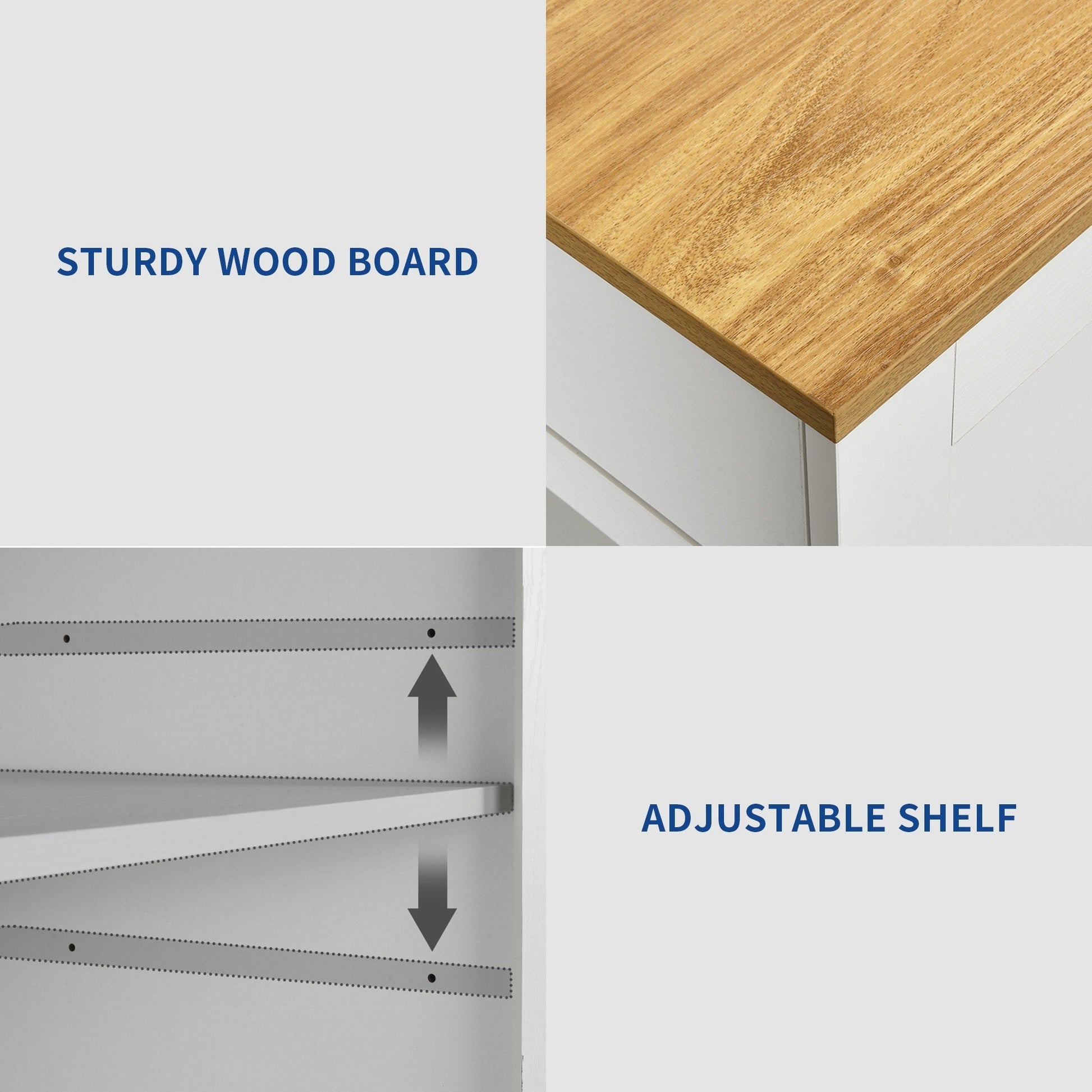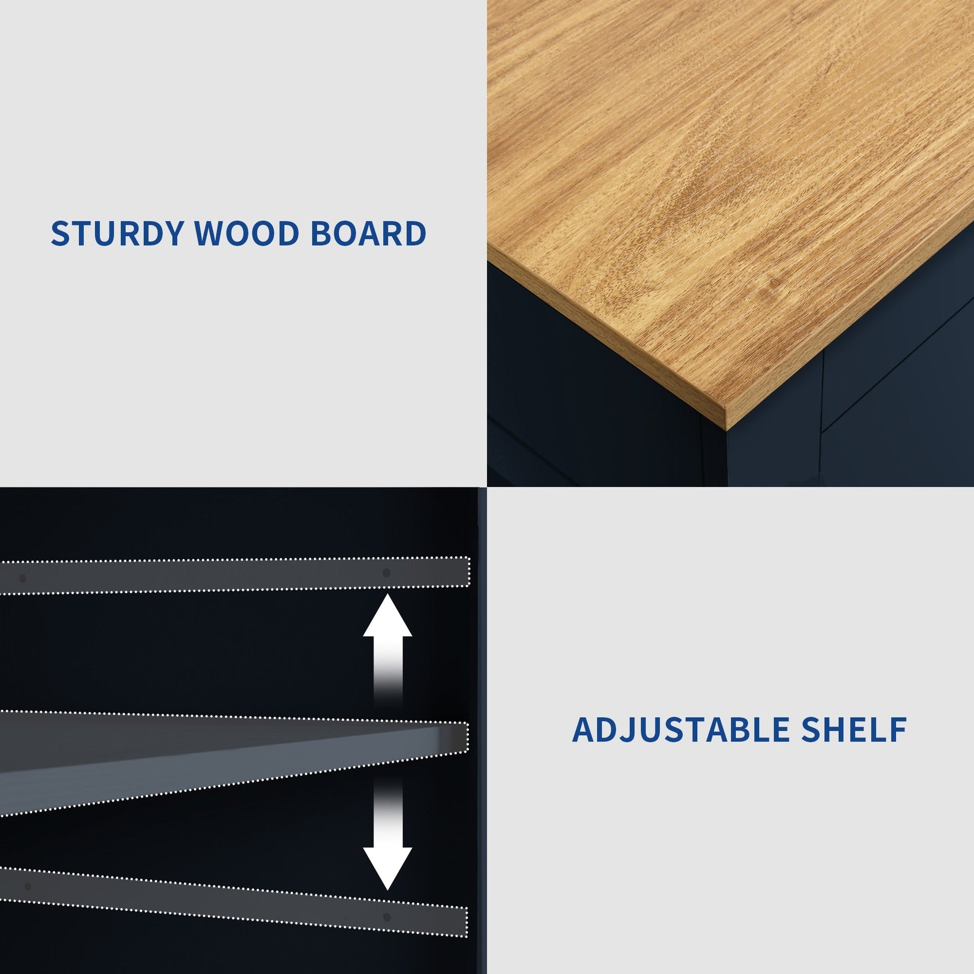 - Comprend 2 tiroirs et 3 étagères pour un rangement organisé dans la cuisine.