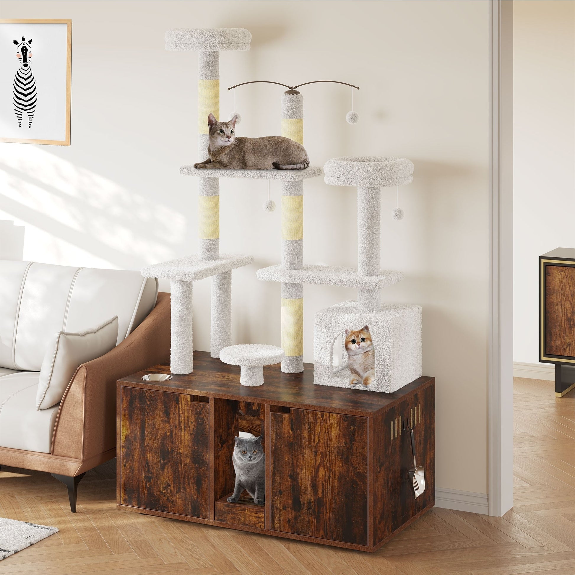 Enclos double pour litière Moasis avec griffoir et arbre à chat
