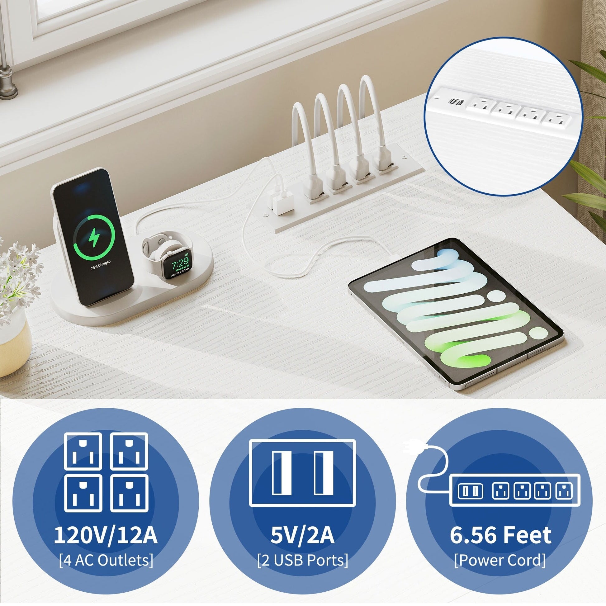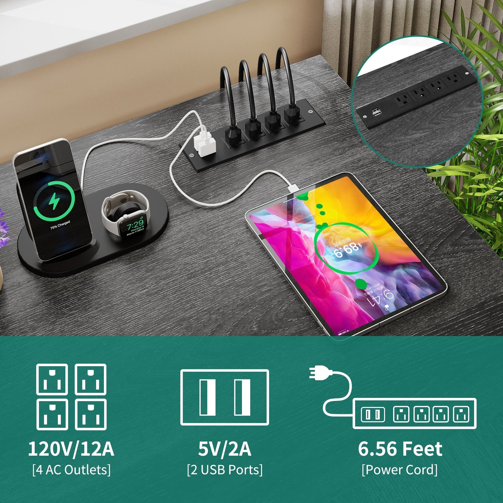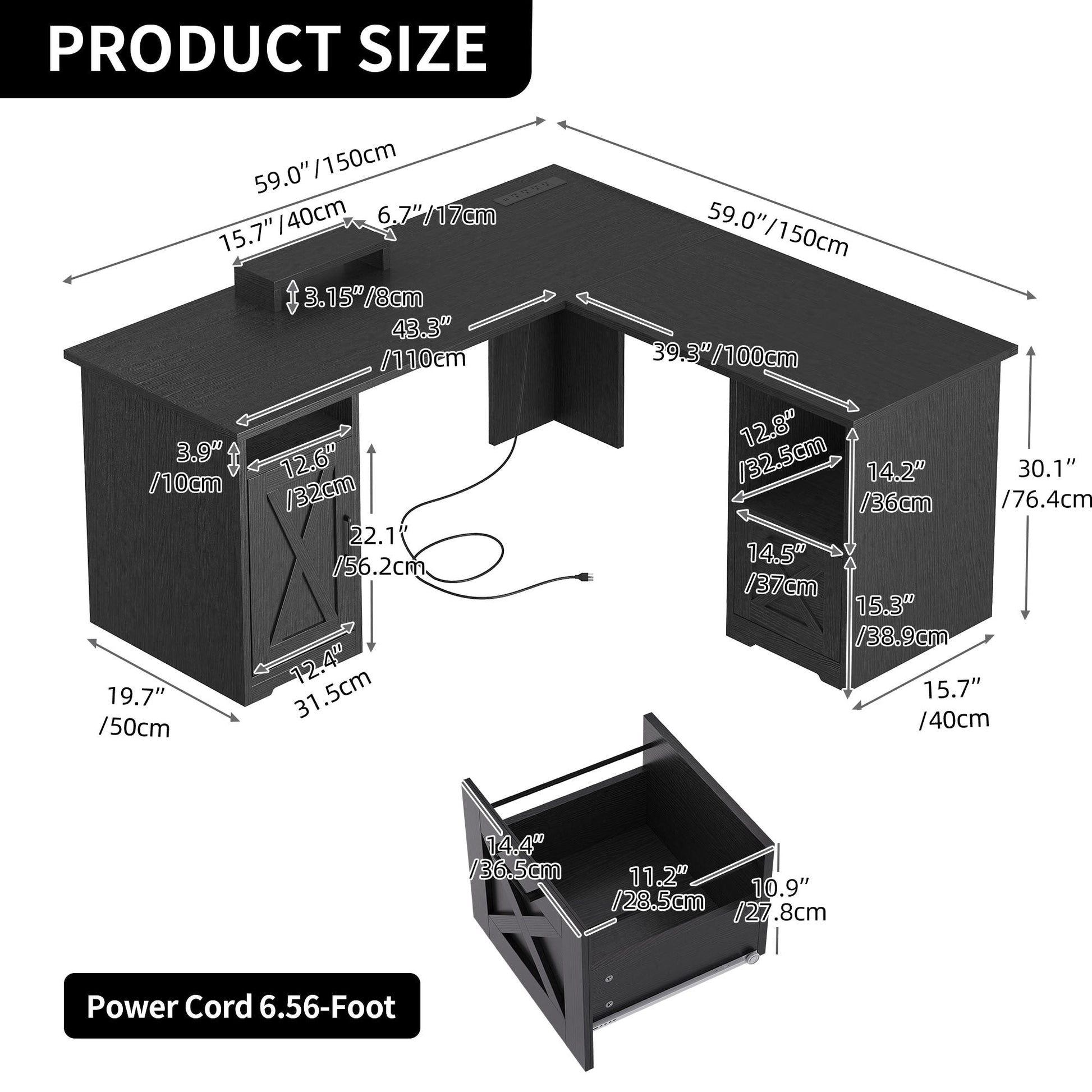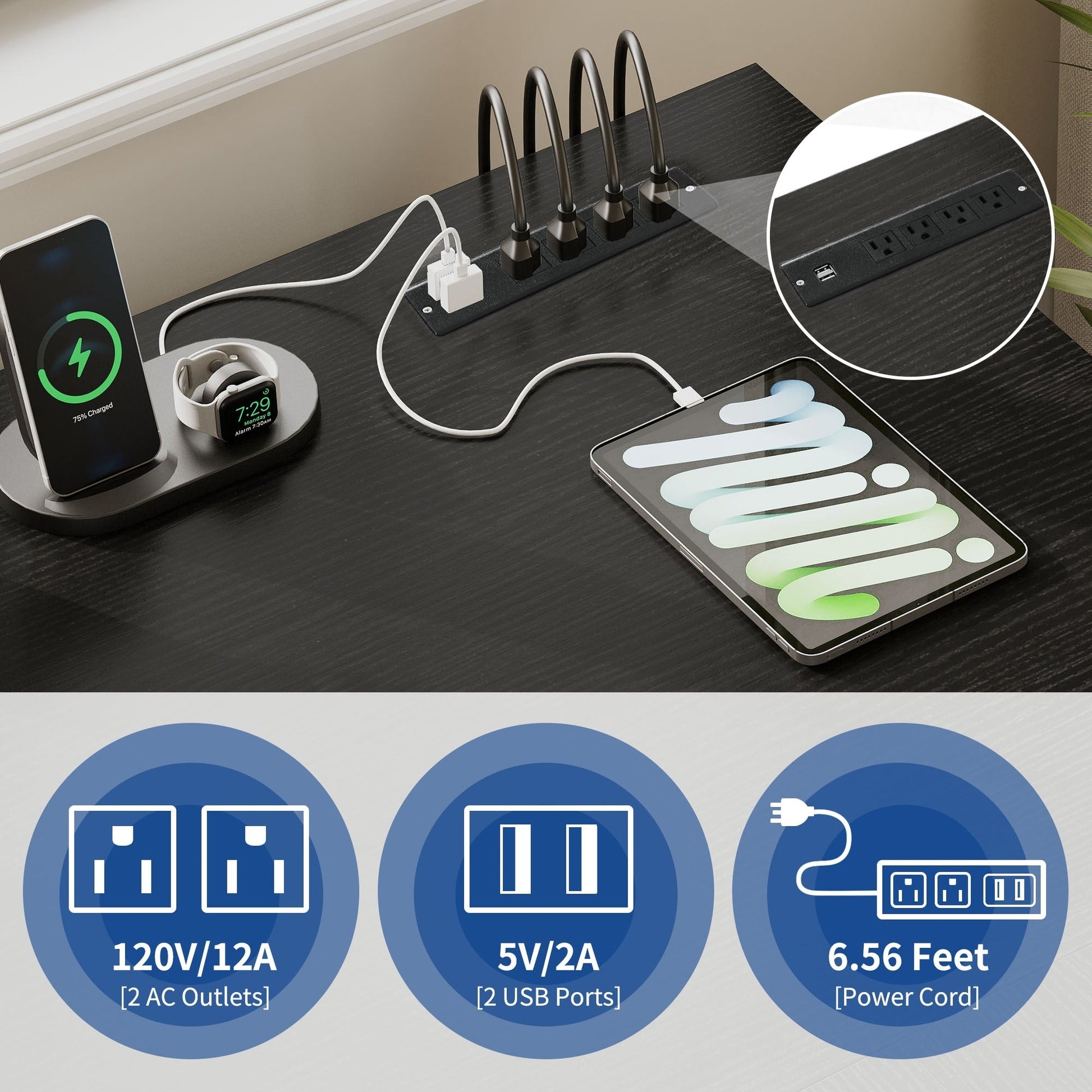 - 1. Rechargez facilement vos appareils grâce à ce bureau en L avec tiroirs. Il est équipé de 2 ports USB, de 4 prises de courant et d'un câble d'alimentation de 2 mètres pour que votre ordinateur, votre ordinateur portable, votre téléphone, votre tablette, votre imprimante et vos consoles de jeux restent branchés et prêts à l'emploi.