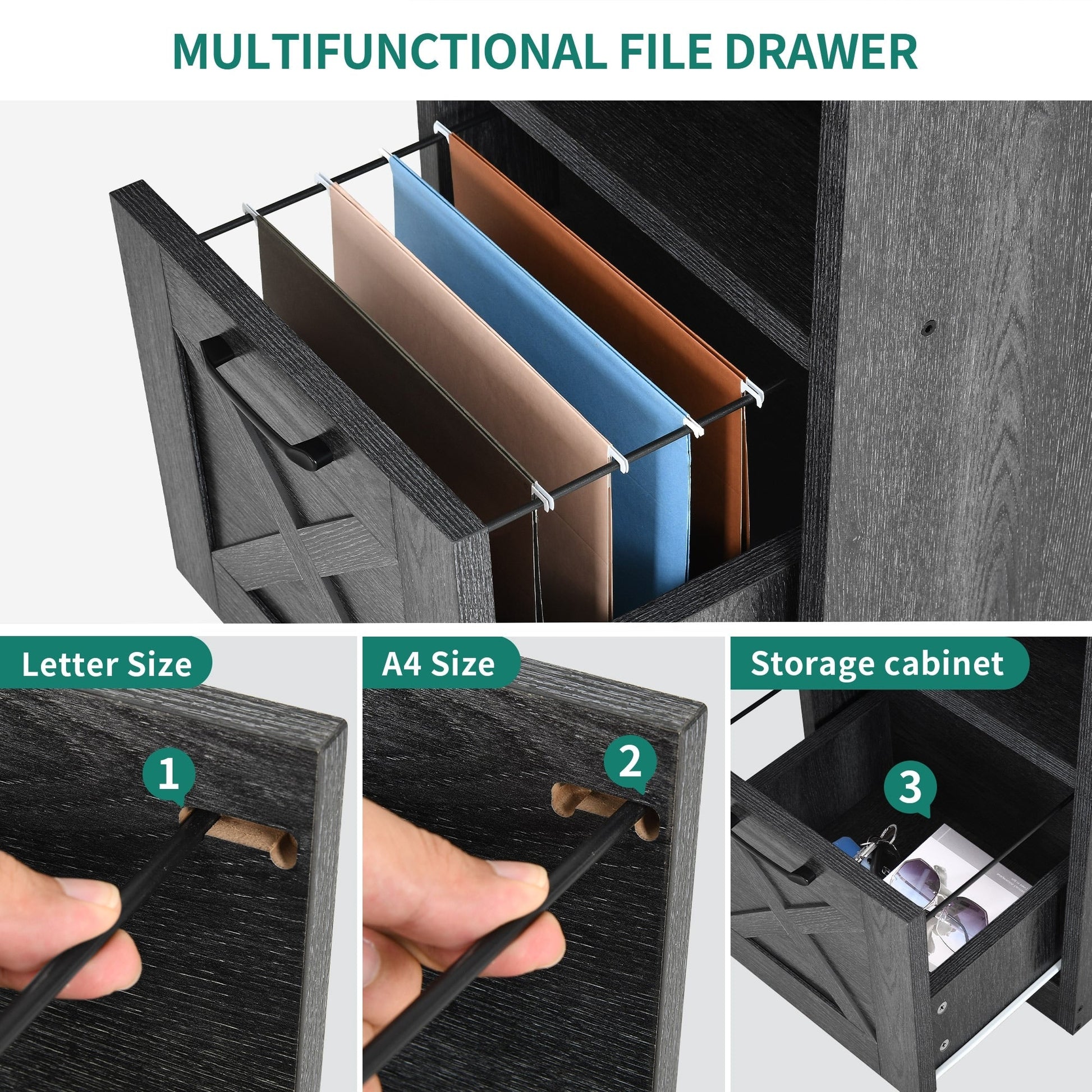 - 4. Optimisez votre espace et gardez vos affaires bien rangées grâce à ce bureau d'ordinateur en forme de L. Il comprend un tiroir à dossiers suspendus avec barres réglables pour les documents au format lettre/A4, un placard de rangement et deux étagères ouvertes pour ranger livres, magazines, dossiers, lettres et autres fournitures.