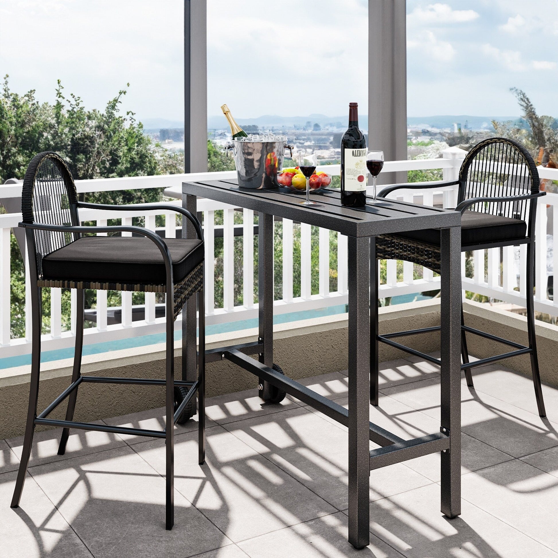Table de bar/comptoir de patio en métal Moasis avec roulettes