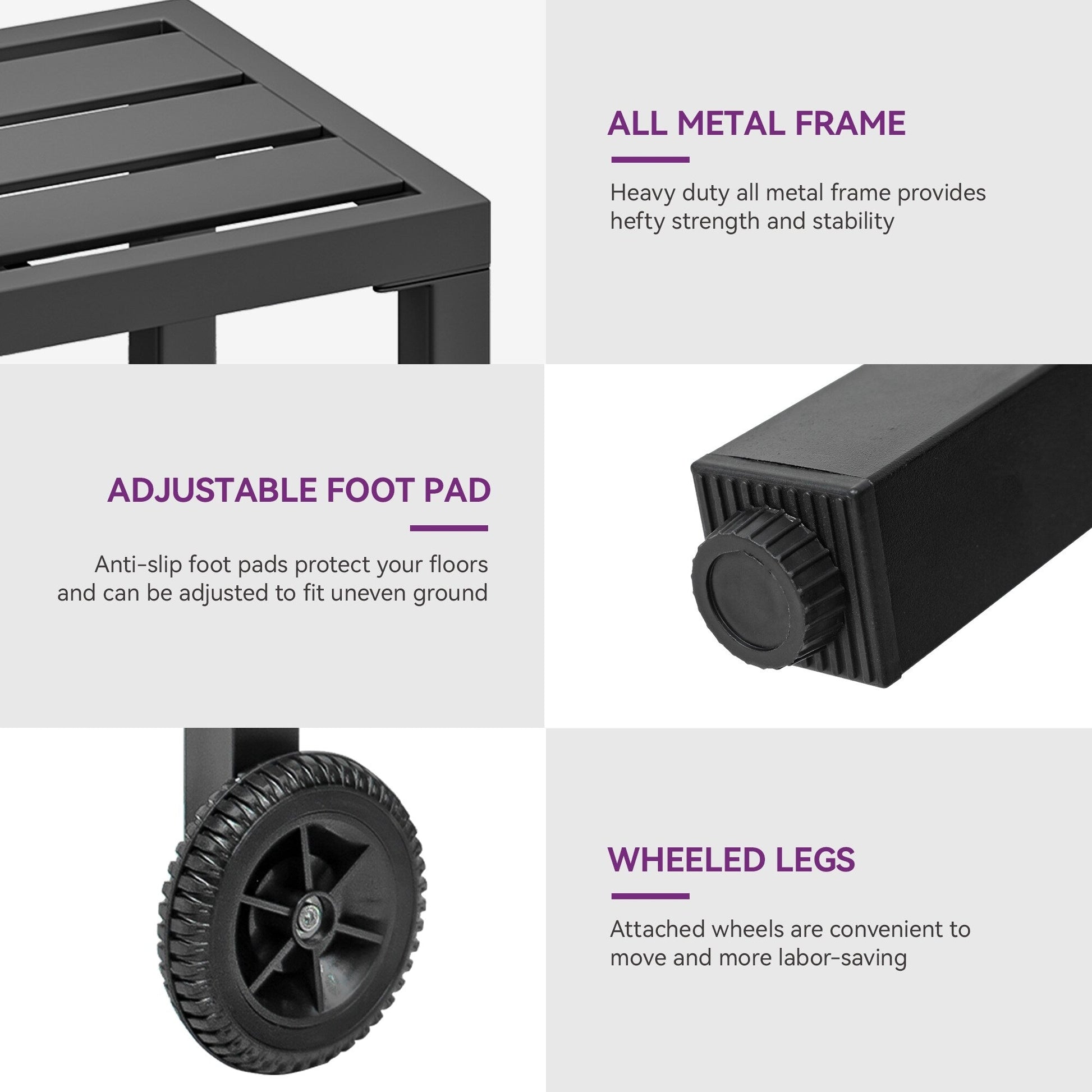 - Facile à nettoyer : le plateau est composé de lattes métalliques à la finition élégante, permettant d'essuyer les taches sans effort avec un chiffon.