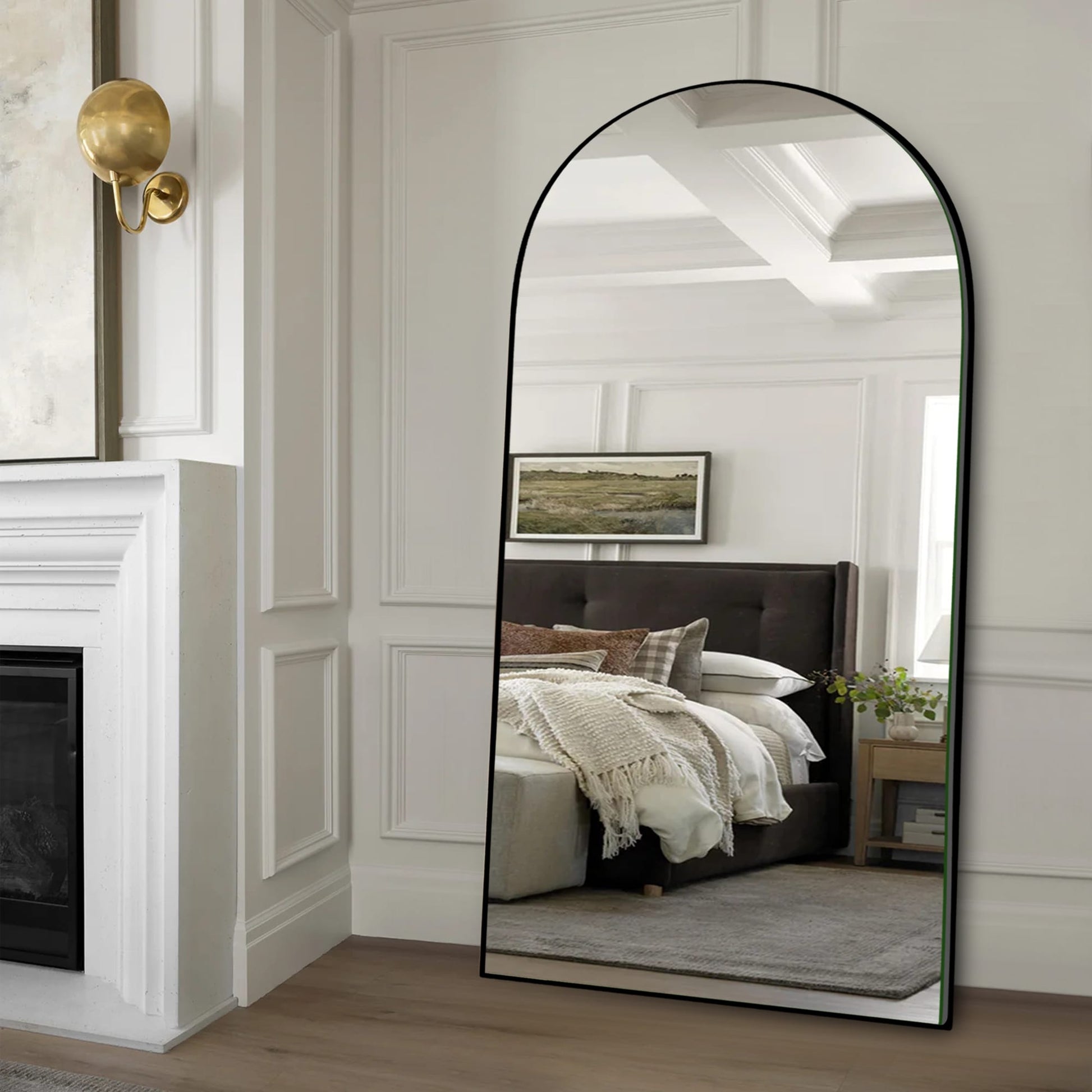 Miroir sur pied moderne en bois arqué, pleine longueur