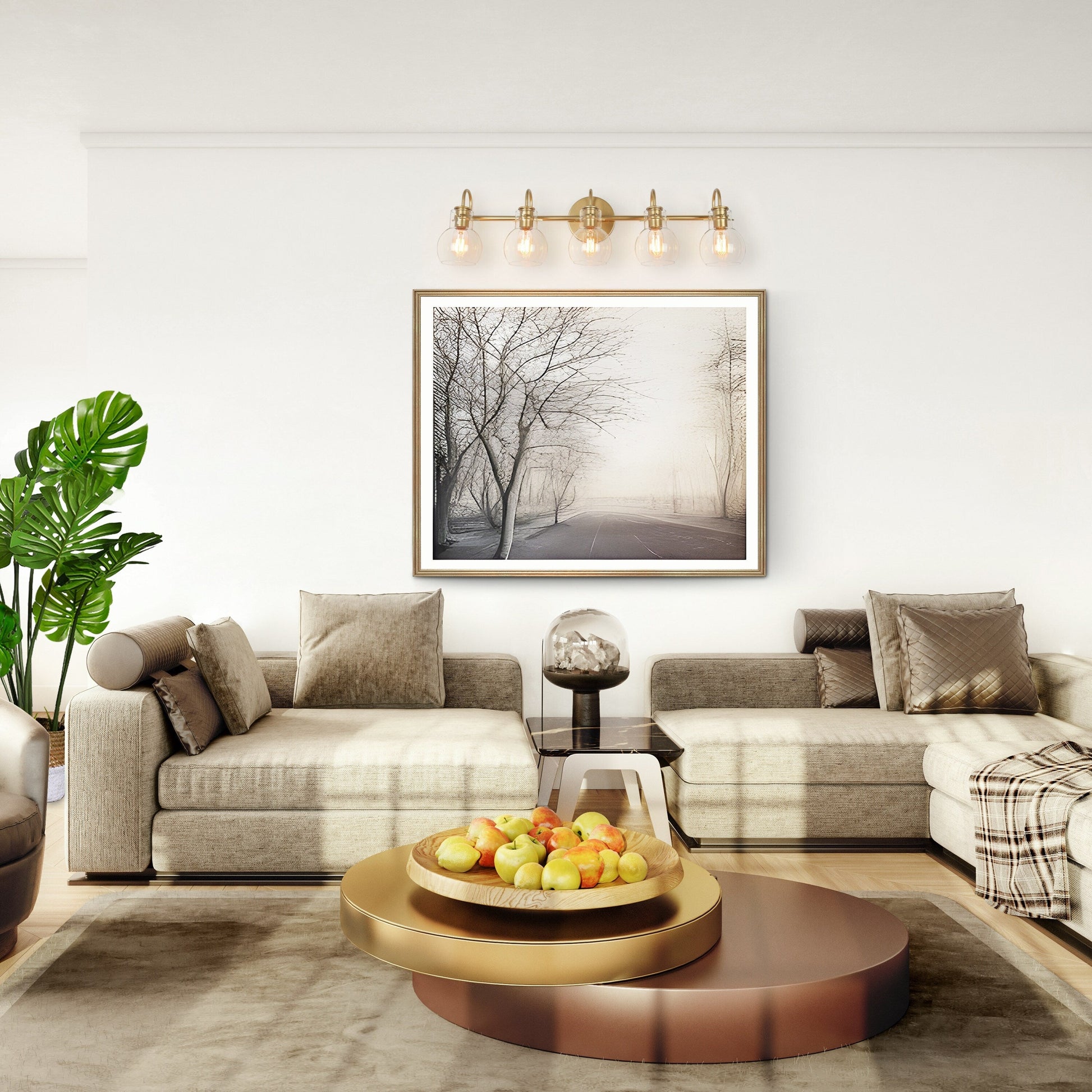 Applique murale moderne dorée à 3 lumières pour salle de bain, sphère en verre