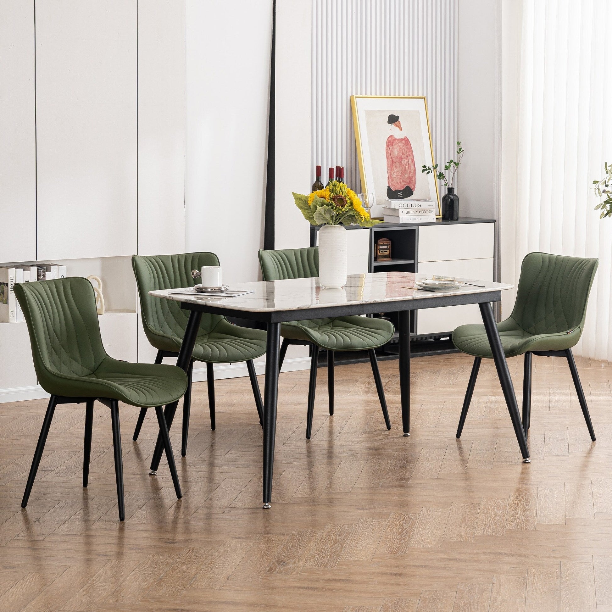 Sublimez votre espace repas avec un ensemble de chaises qui, en plus d'embellir votre décoration, épousent les courbes de votre corps pour un confort optimal. Ornées d'une élégante rayure évoquant une queue de baleine, d'assises en cuir et de robustes structures métalliques, ces chaises de salle à manger, alliant différents matériaux, affirment un style contemporain. Sans accoudoirs, elles se glissent facilement entre les tables pour un gain de place optimal et offrent un parfait équilibre entre style et fonctionnalité. Polyvalentes, ces chaises s'intègrent à merveille dans de nombreux espaces : salle à manger, cuisine, salon, chambre d'amis, salle d'attente et même maison de vacances. Elles peuvent servir de fauteuils de lecture confortables, de coussins d'angle douillets, de chaises de maquillage, de chaises longues, etc.