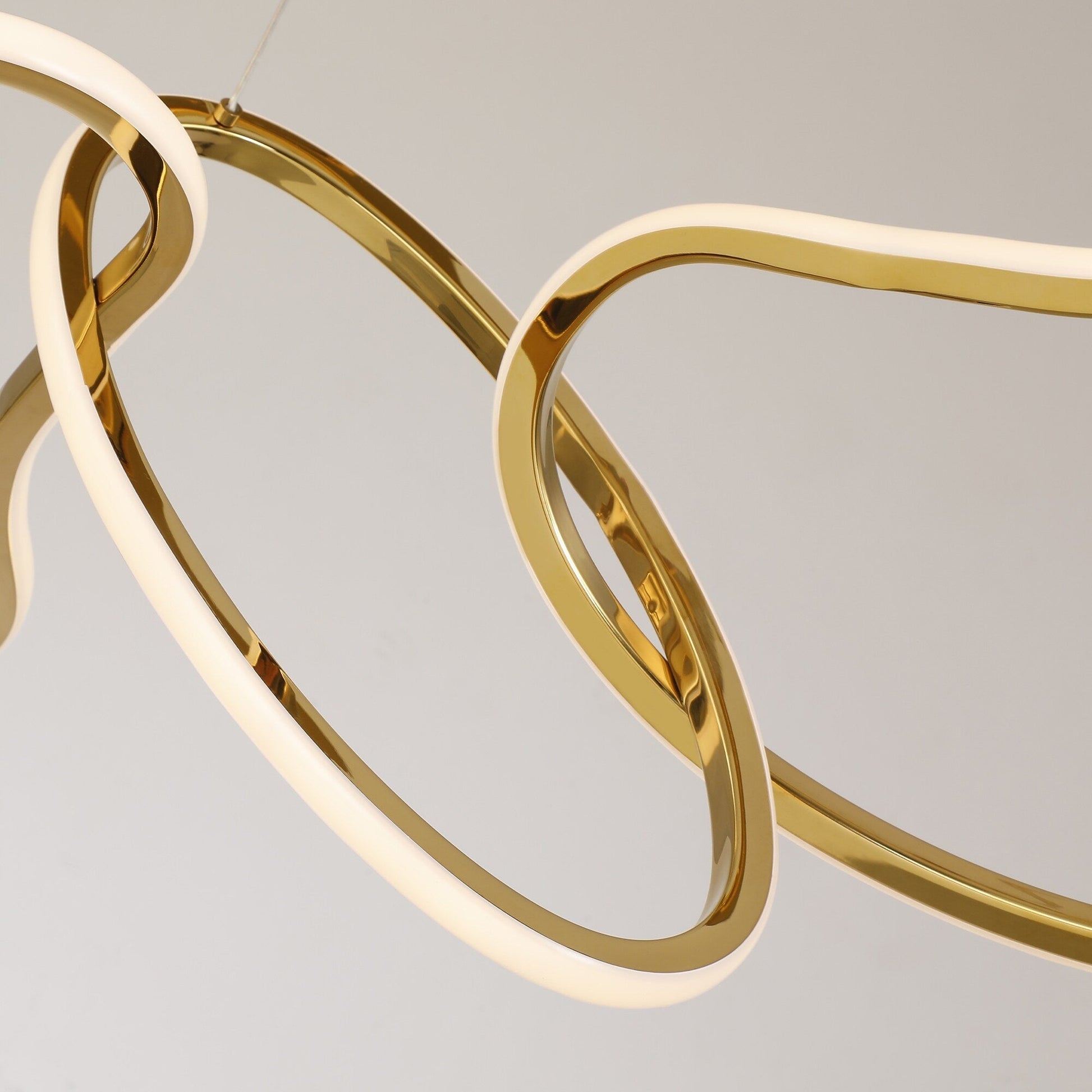 Lustre LED de luxe nordique en acier inoxydable à motifs entrelacés, idéal pour une salle à manger ou un plafond.
