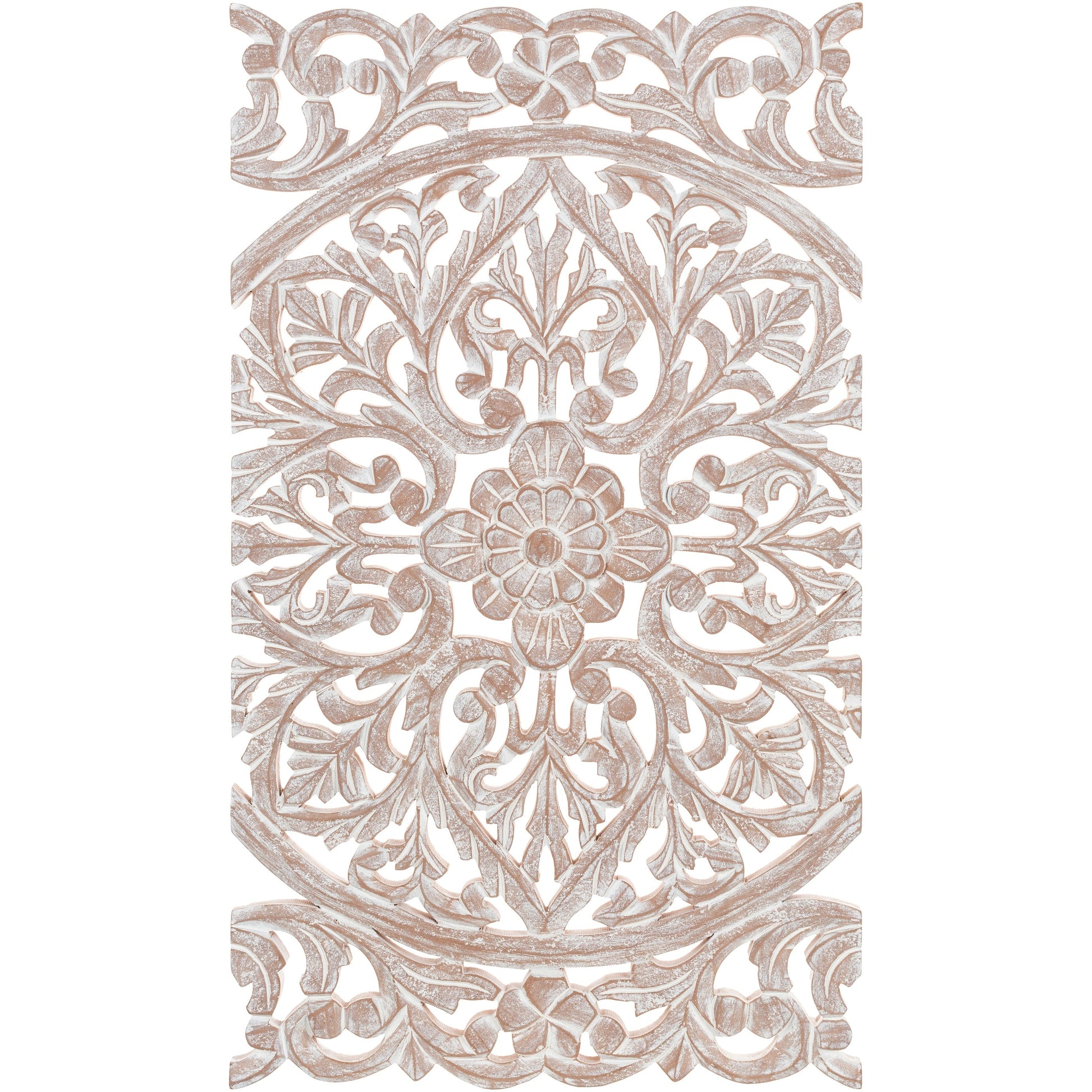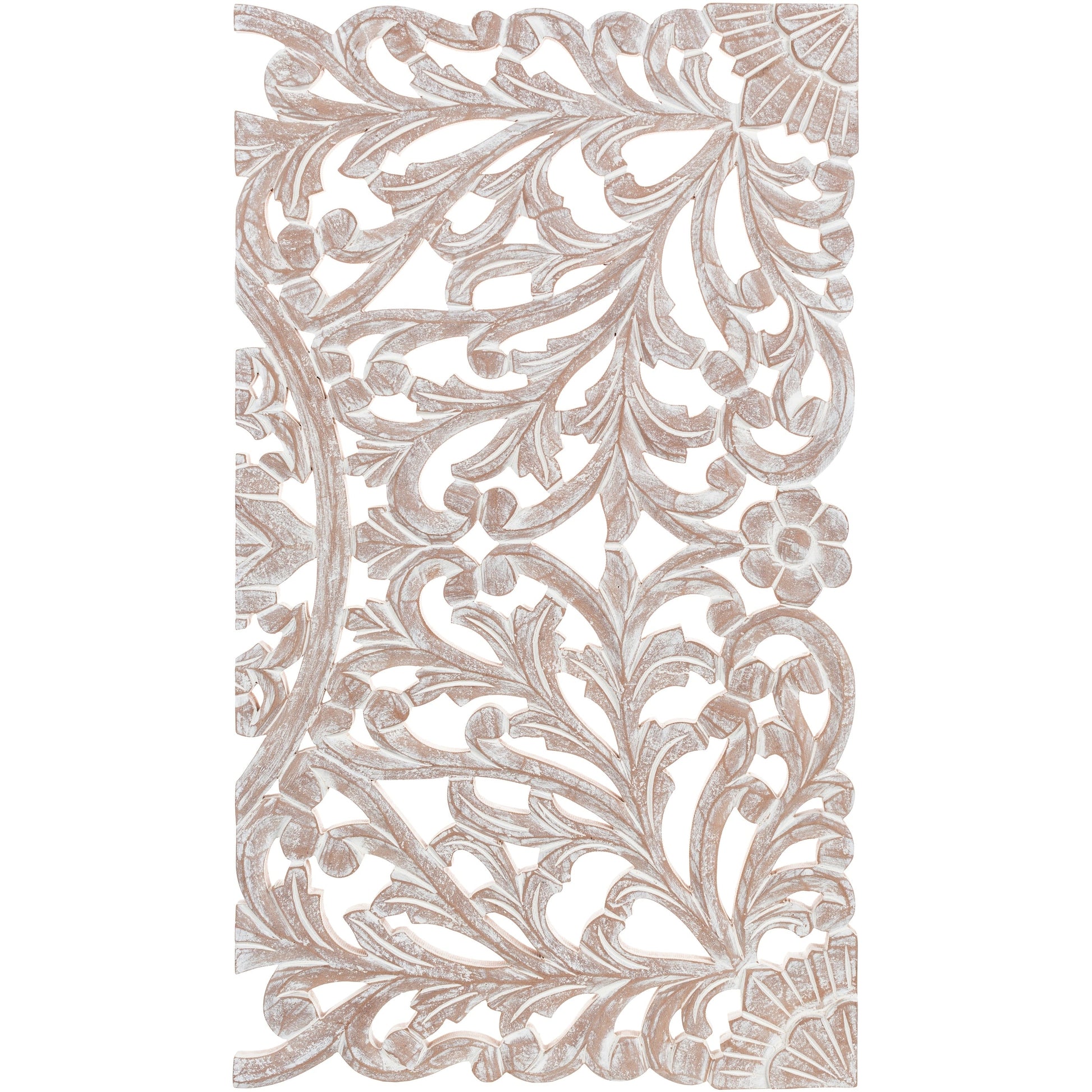 L'élégance des panneaux muraux Norma apporte une touche spectaculaire à n'importe quel espace. Cette décoration murale en bois finement sculptée se compose de trois grands panneaux. Chaque panneau est sculpté à la main par un artisan, lui conférant un aspect antique. Le motif complexe, composé de festons et d'acanthes, arbore une finition vieillie. Il réinterprète la sculpture sur bois indienne traditionnelle, emblématique, en un motif à la fois sobre et imposant. Mesurant 122 x 76 cm, cet ensemble constitue un ajout impressionnant à toute pièce. Pour une touche de modernité, ces panneaux sont finis à la main par un artisan avec des finitions vieillies de bon goût. Disponible en finition naturelle. Chaque panneau mesure 41 cm de large. Nettoyer avec un chiffon sec.