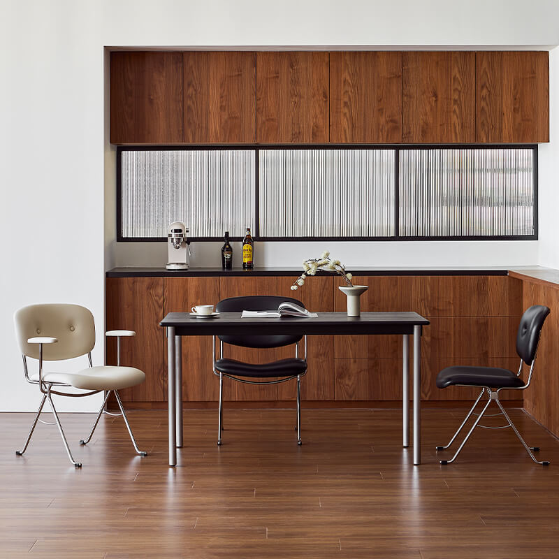 Les pieds de la chaise de salle à manger sont fabriqués à partir de tubes ronds en acier inoxydable, présentant un design raffiné avec une excellente résistance à la corrosion et une durabilité.