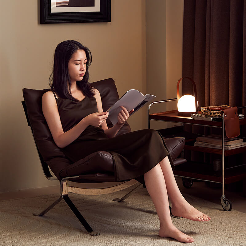 INCLINAISON DU DOSSIER À 105° - Après de nombreux essais et tests, le concepteur a finalement déterminé que l'inclinaison du dossier était de 105°, ce qui assure le confort et permet une lecture de loisir.