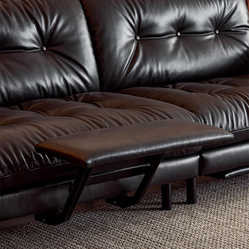Le canapé Omelette, avec son repose-jambes réglable, dégage un charme élégant. Ses tons riches et la texture souple de son cuir créent une atmosphère rassurante. Il confère à l'espace une sophistication et une profondeur raffinées.