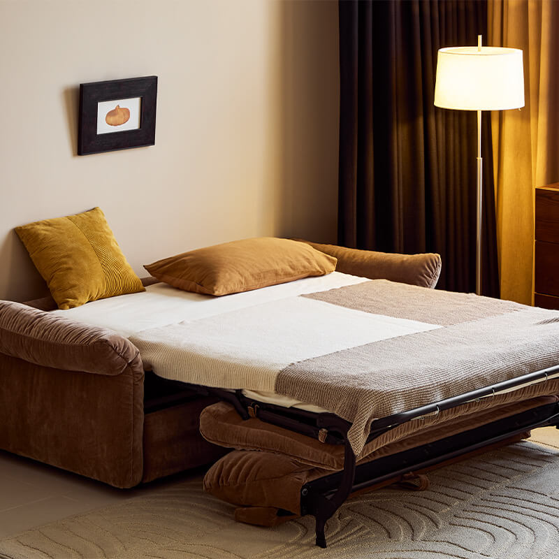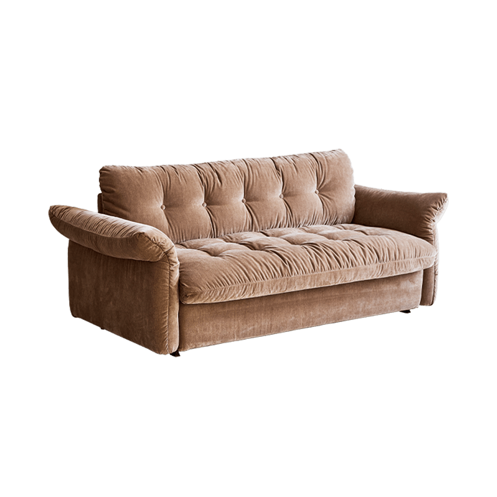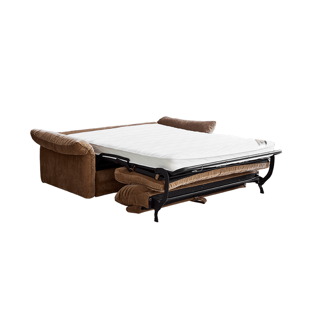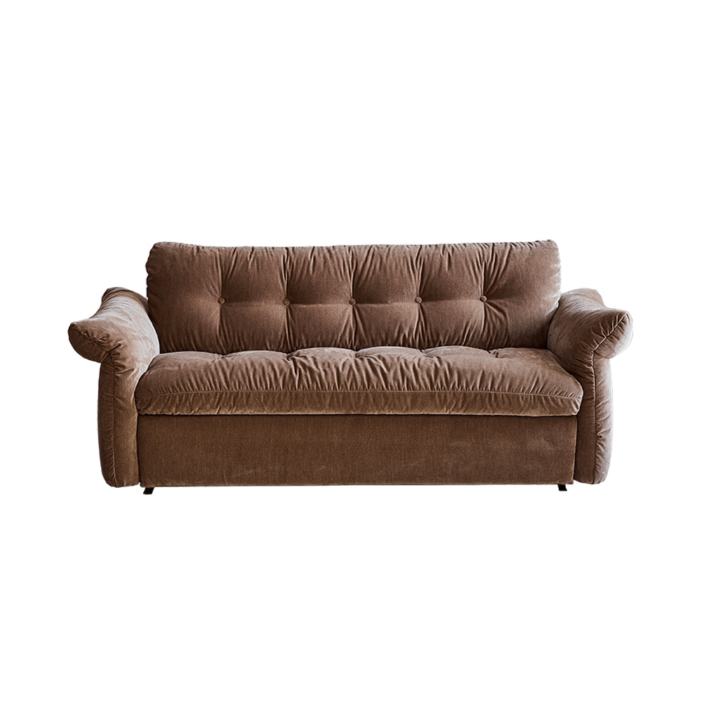 Le canapé-lit de la série Omelette incarne l'équilibre parfait entre esthétique et fonctionnalité. Son allure épurée et élégante s'allie à un mécanisme ultra-simple. D'une simple traction, il se transforme en lit king-size. Les coussins d'assise rembourrés et les accoudoirs inclinés vers l'extérieur améliorent le confort, tout en optimisant l'espace pour que chaque centimètre carré soit parfaitement fonctionnel.