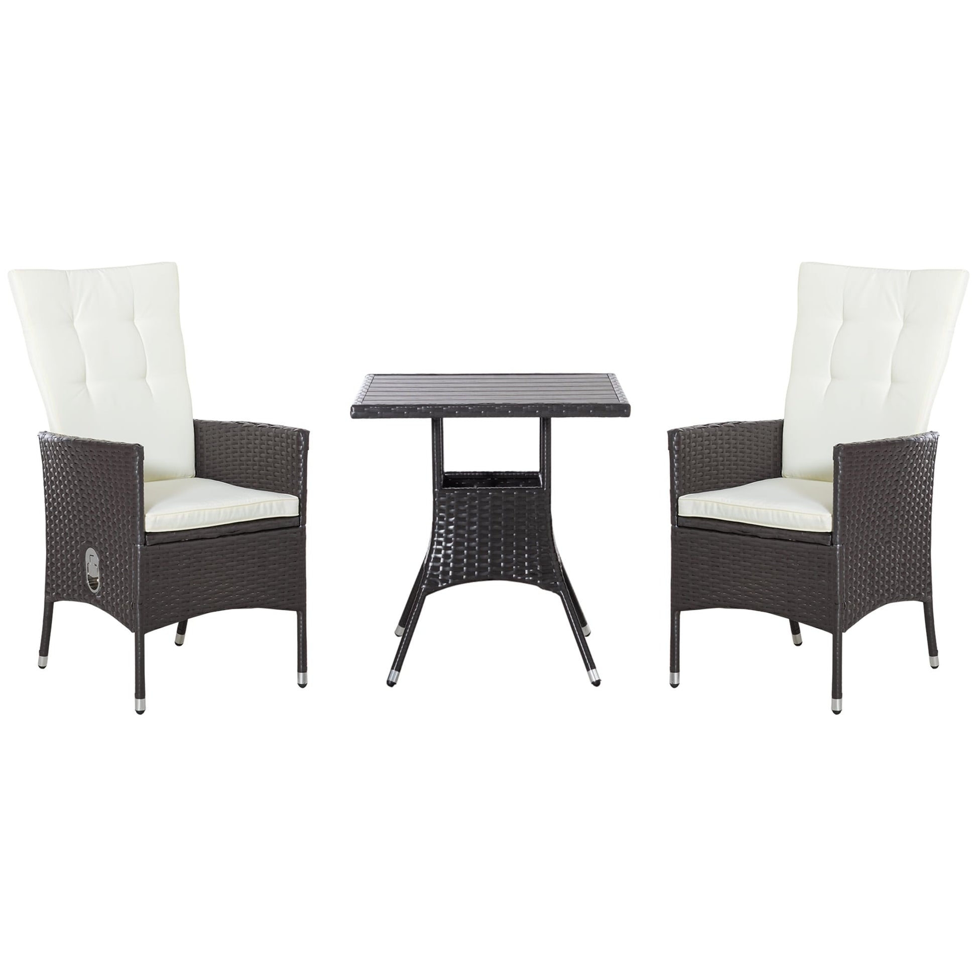 - Notre ensemble bistro de patio trois pièces comprend deux chaises inclinables d'extérieur et une table basse assortie.