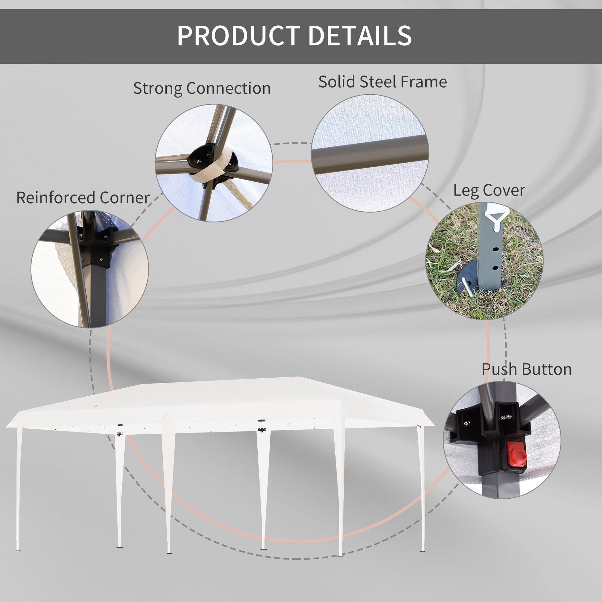 Outsunny propose une tente pliante extra-large idéale pour les fêtes. Créez un espace ombragé et protégez-vous du soleil en toute tranquillité. Avec l'aide de quelques amis, déployez un vaste espace pouvant accueillir de nombreux invités sans vous sentir à l'étroit. Traiteur pour mariages, prestataire événementiel ou simple fêtard souhaitant organiser une soirée sous une tente, emportez-la partout grâce à son sac de transport pratique, compatible avec les voitures. Avec Outsunny, installez, dépliez et repliez votre tente en un clin d'œil.