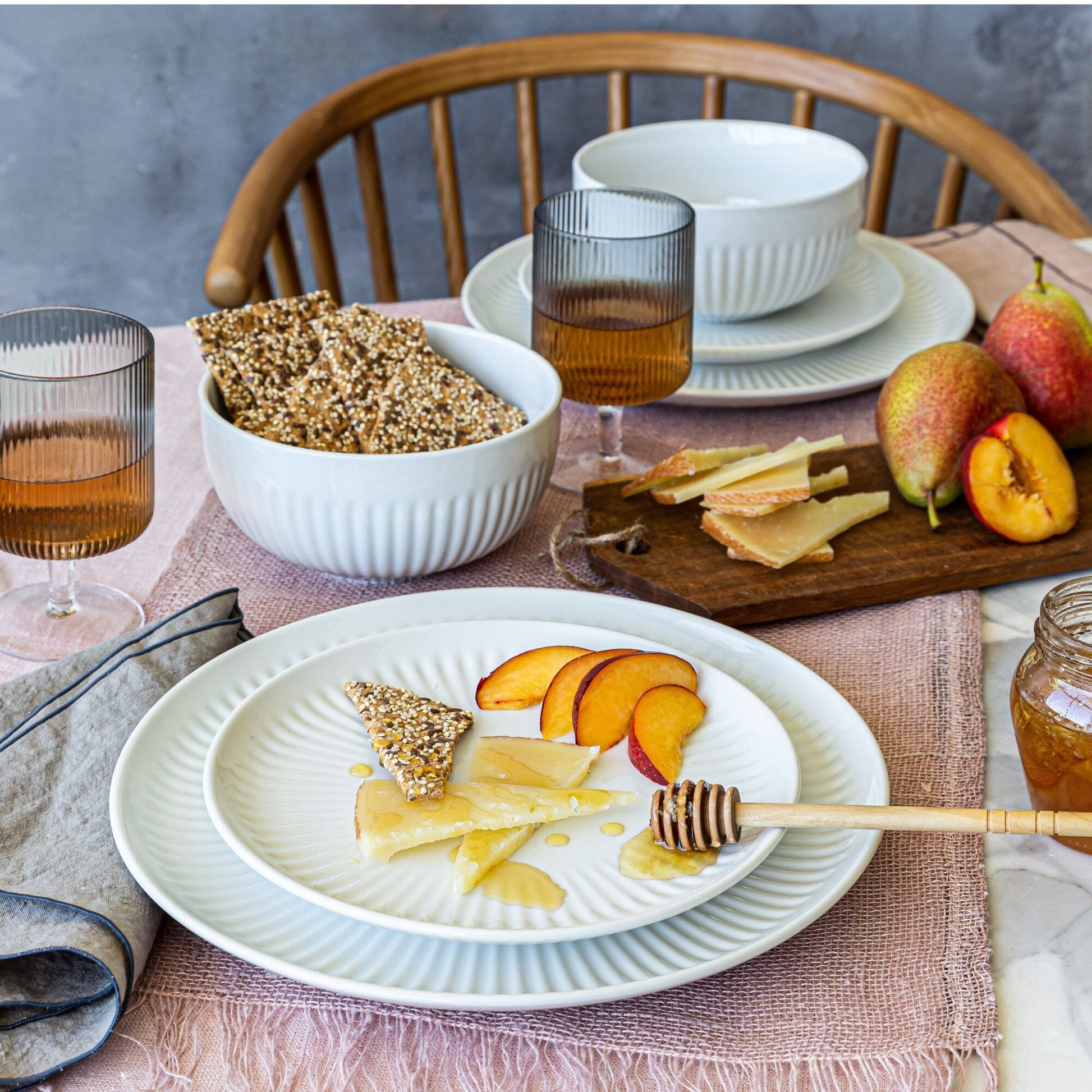 Service de table 24 pièces en porcelaine blanche cannelée Over and Back