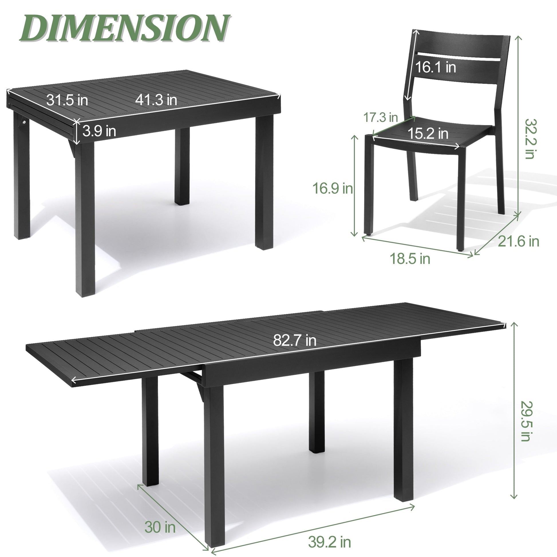 Rendez votre été encore plus exceptionnel avec cet ensemble de salle à manger d'extérieur en aluminium de 5/7/9 pièces. Grâce à sa table et ses chaises extensibles, cet ensemble est conçu pour accueillir des invités de dernière minute tout en optimisant l'espace, ce qui le rend idéal pour les petits espaces extérieurs. Son design moderne apporte une touche d'élégance à tout espace extérieur et rehausse la décoration de votre terrasse, parfait pour les repas et les réceptions en plein air.