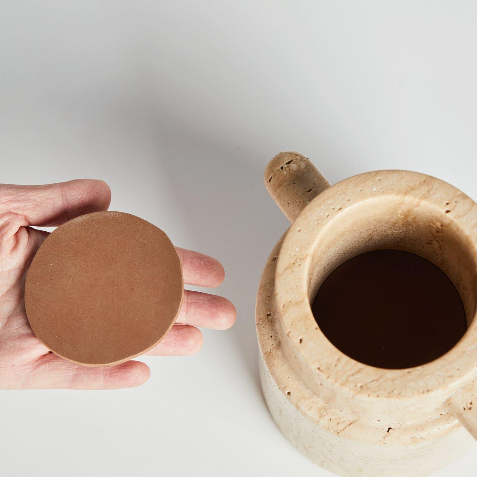 Véritable pierre de travertin naturelle ; plaque nominative en métal ; tapis en EVA.