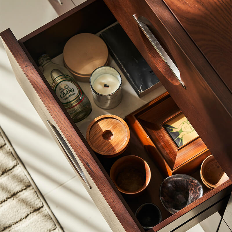 Nous utilisons du frêne nord- américain de qualité supérieure , de grade FAS , reconnu pour sa durabilité et sa beauté naturelle . Ce matériau haute densité résiste à la déformation et aux fissures, tout en offrant une excellente résistance à la corrosion . Nos buffets sont recouverts d' une peinture de haute qualité et sans odeur pour une respiration plus saine .