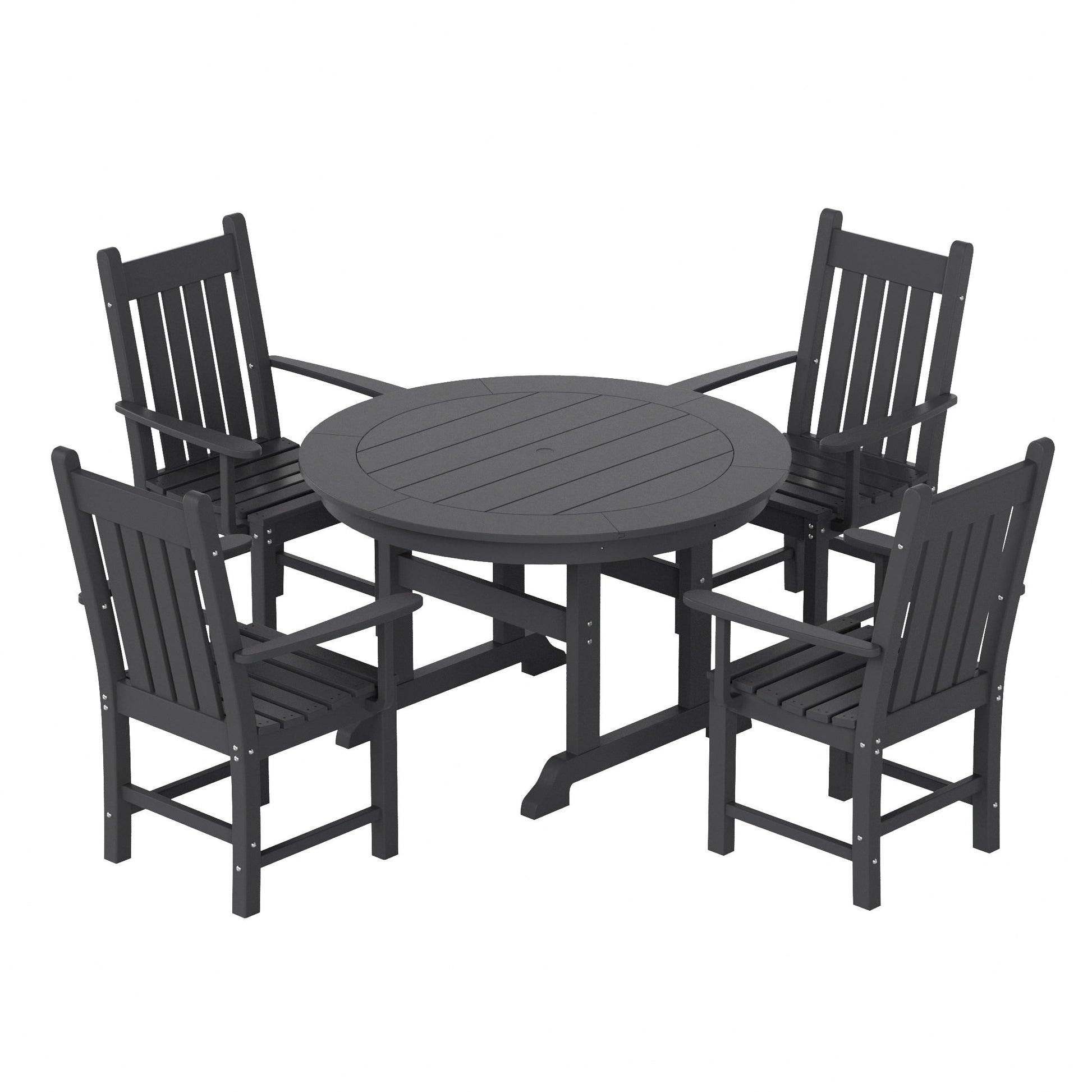 Ensemble de salle à manger d'extérieur Polytrends Laguna en PEHD résistant aux intempéries, avec table ronde et fauteuils (ensemble de 5 pièces)