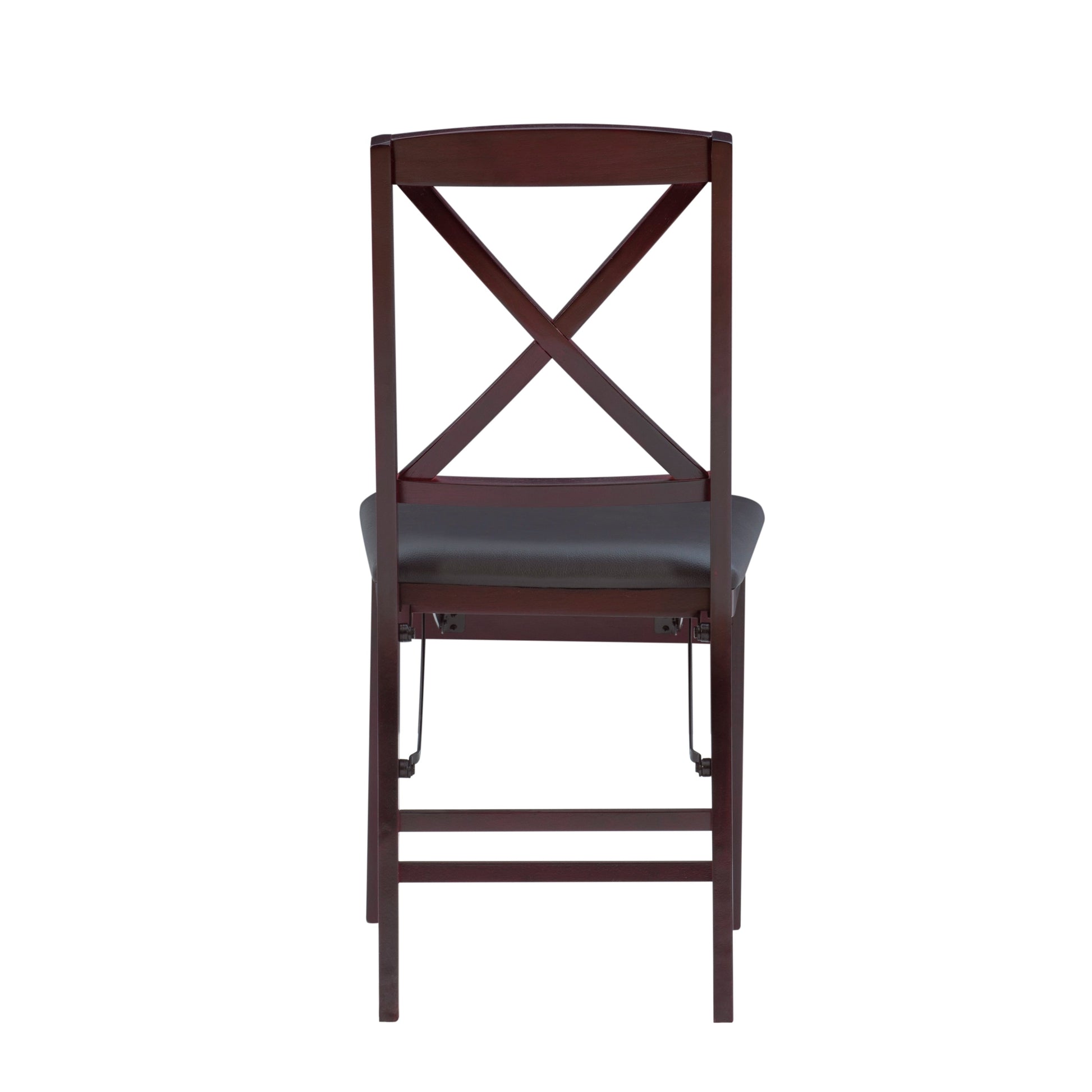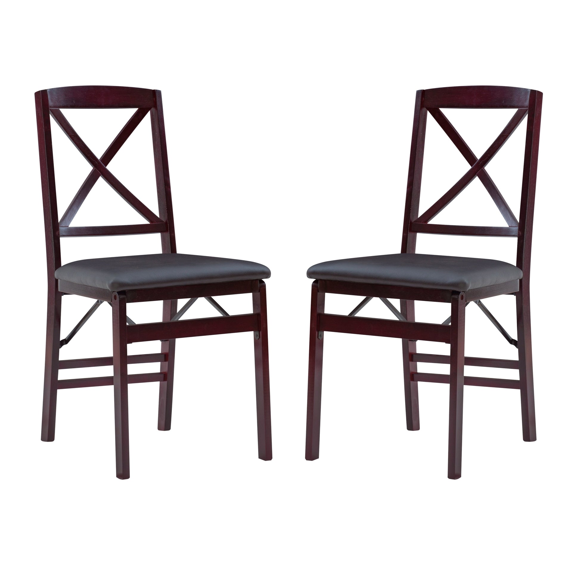 Des sièges élégants et pratiques grâce à leur conception pliante. Ce duo de chaises pliantes apporte une touche d'élégance à vos repas et réceptions. Leurs structures en bois arborent un dossier en X classique et une assise rembourrée en similicuir facile à nettoyer, imitant à la perfection le cuir et sublimée par une riche finition merlot. Des supports avant et arrière assurent une stabilité optimale. Peu encombrantes, ces chaises se plient pour un rangement et un dépliage aisés. Aucun montage requis.