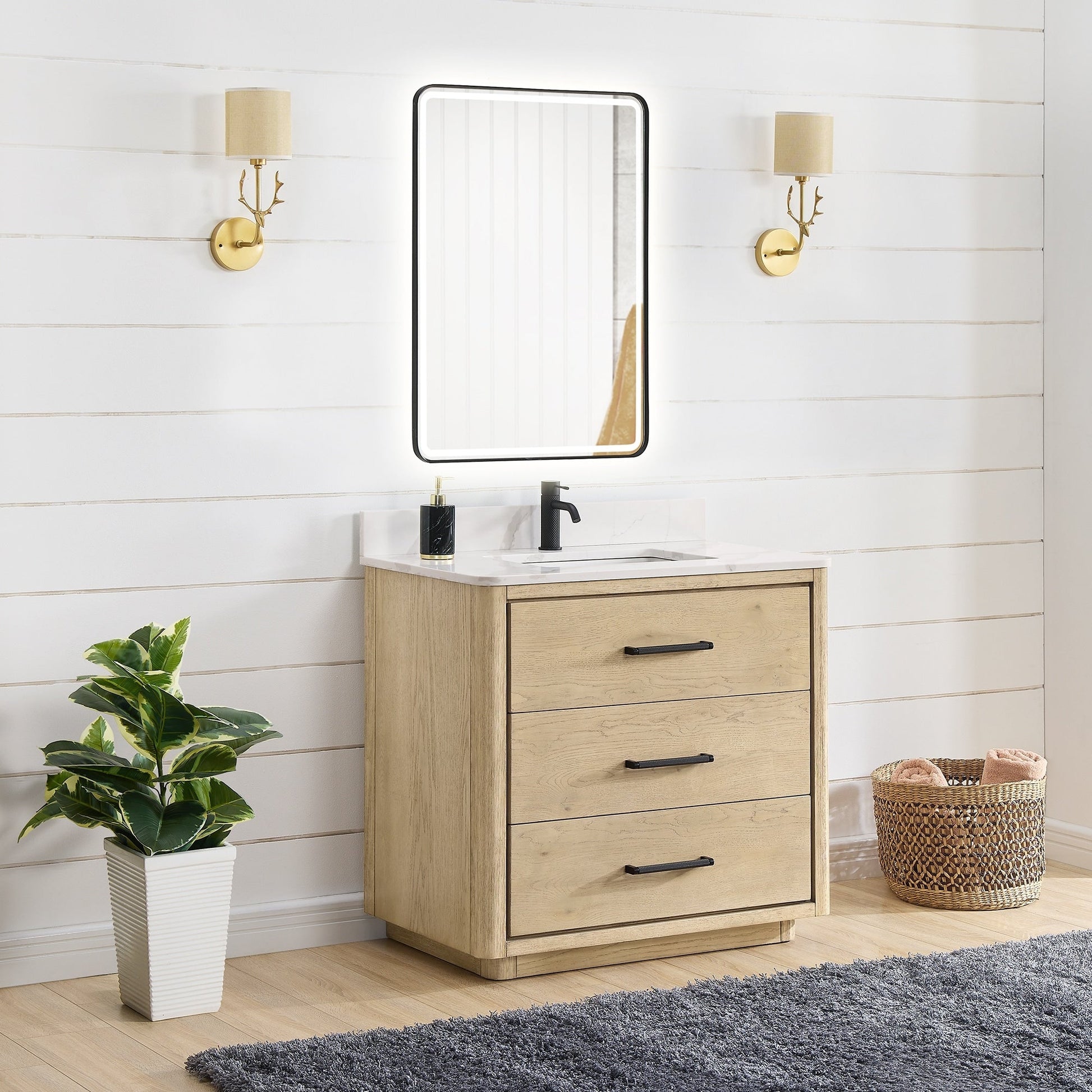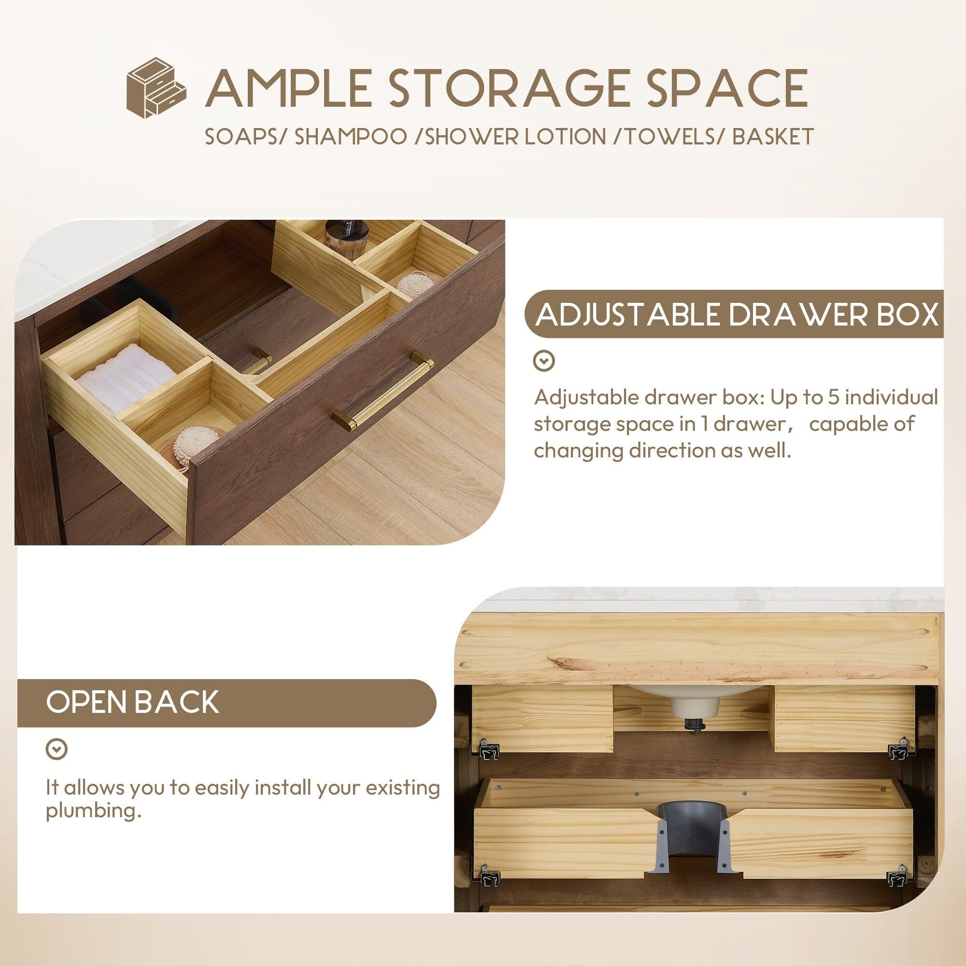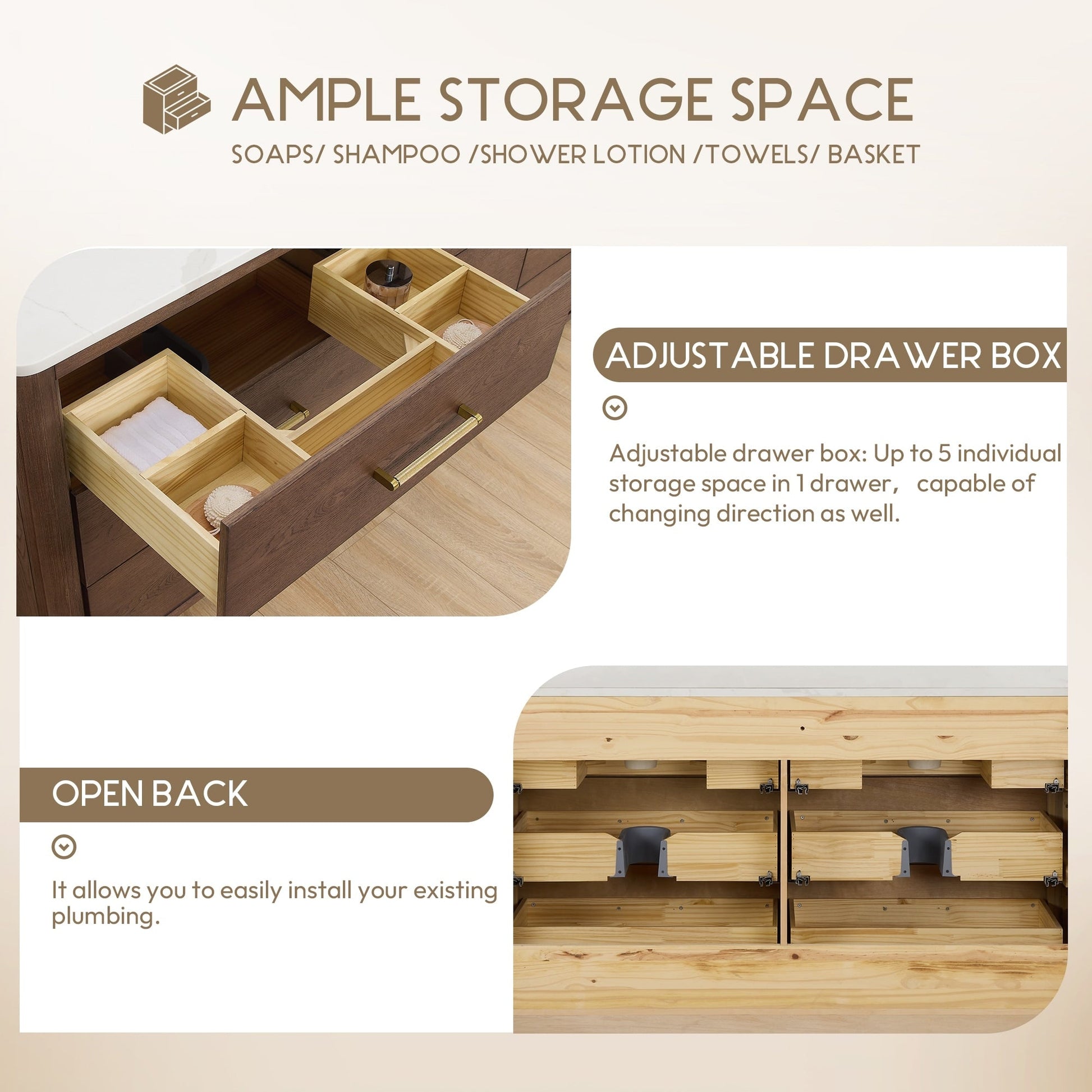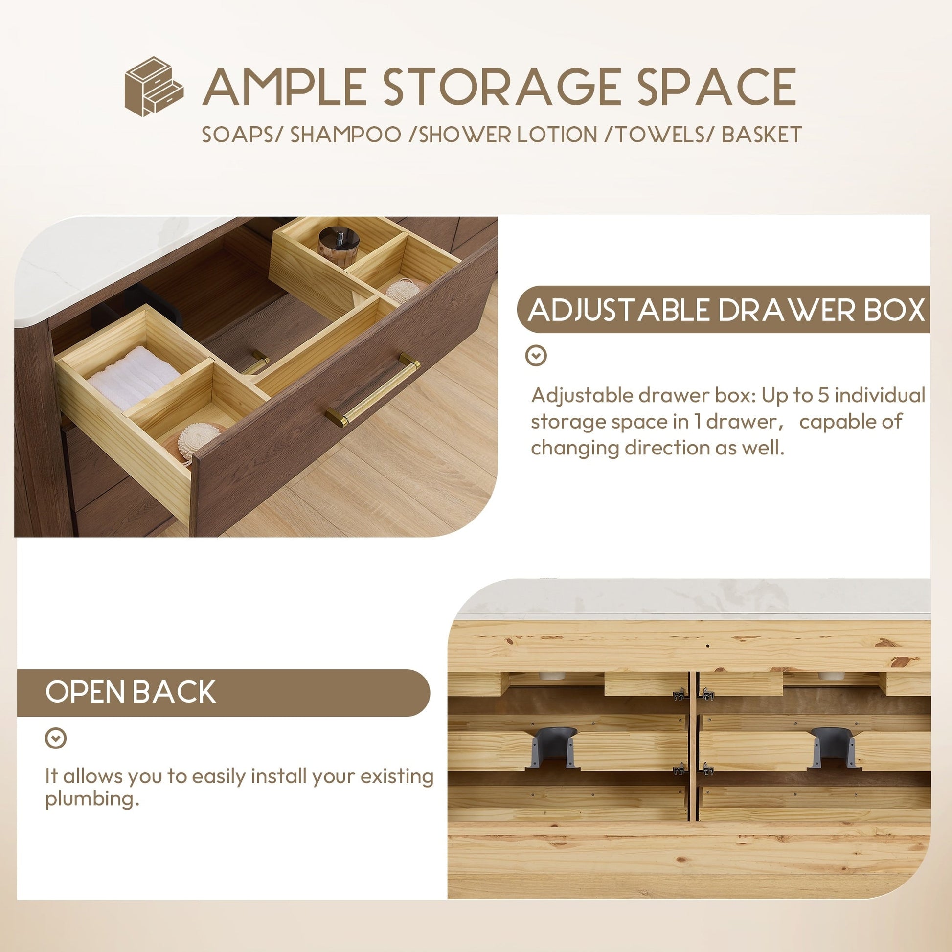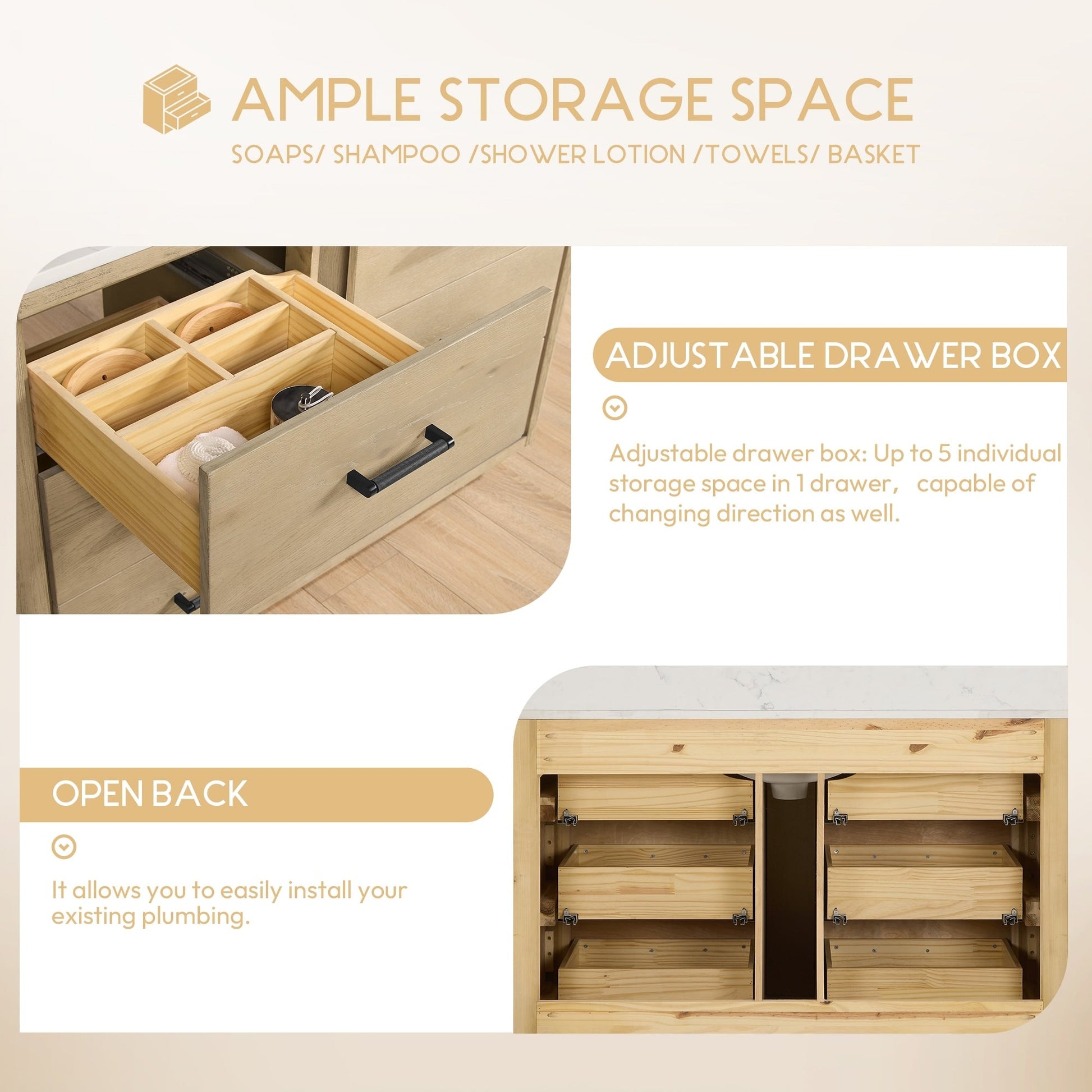 ● Installation requise : Le meuble-lavabo autoportant est livré entièrement assemblé pour votre commodité (sans panneau arrière). Conçu pour une installation facile et sans tracas de la plomberie et de la robinetterie.