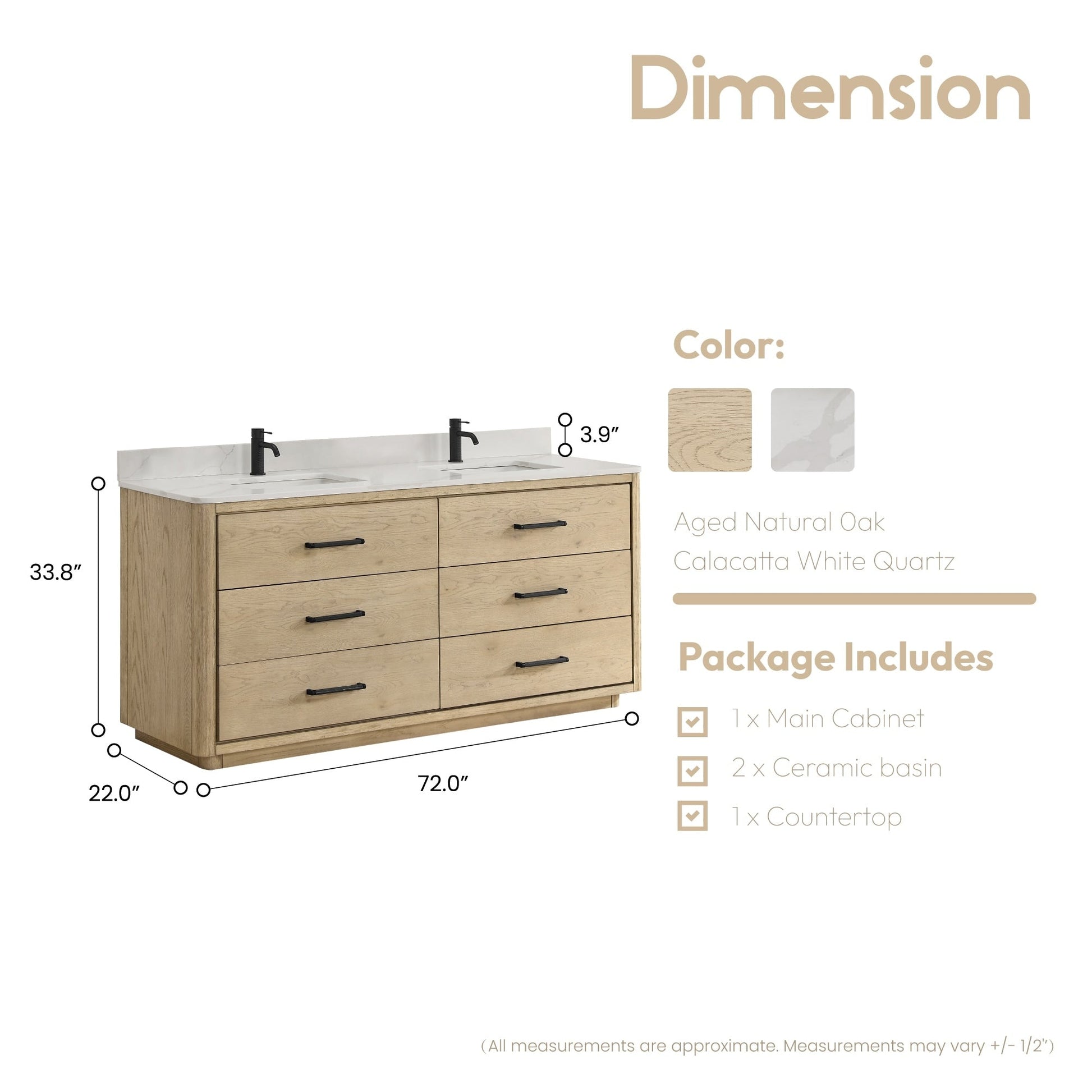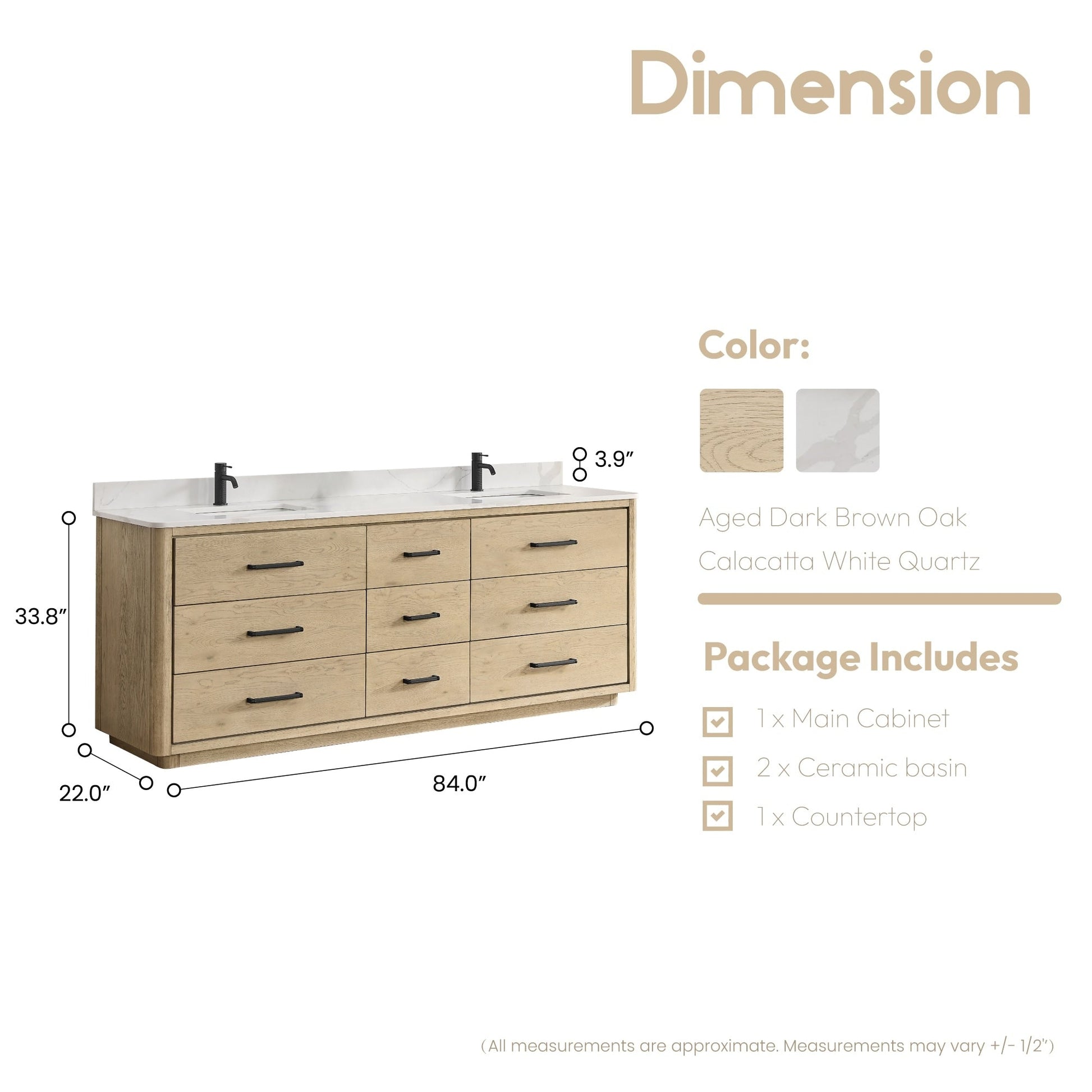 ● Dessus : Le dessus en pierre de quartz de 0,8' d'épaisseur, couleur Fish Maw White, ajoute un aspect propre et élégant, avec des bords chanfreinés à 45 degrés retenant l'eau tout autour avec dosseret.