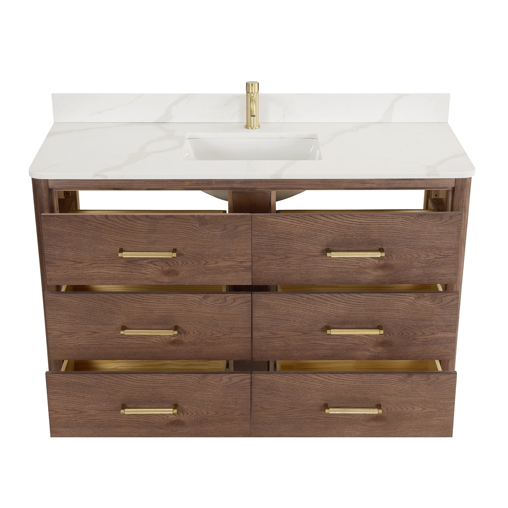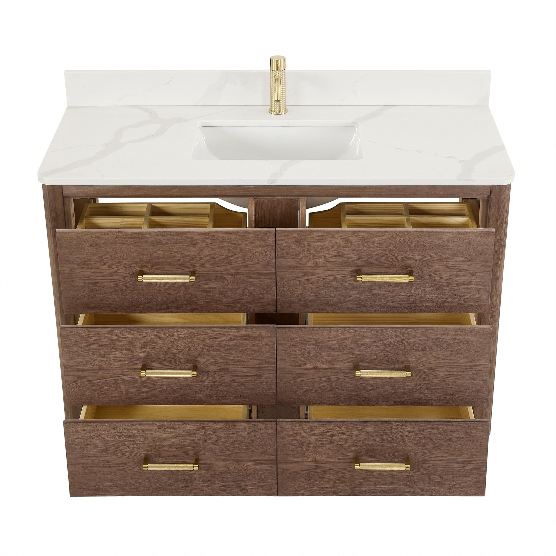 48 pouces - Six tiroirs robustes à fermeture douce et à queue d'aronde sont dotés de séparateurs intégrés pour un accès facile à tous vos articles de toilette.