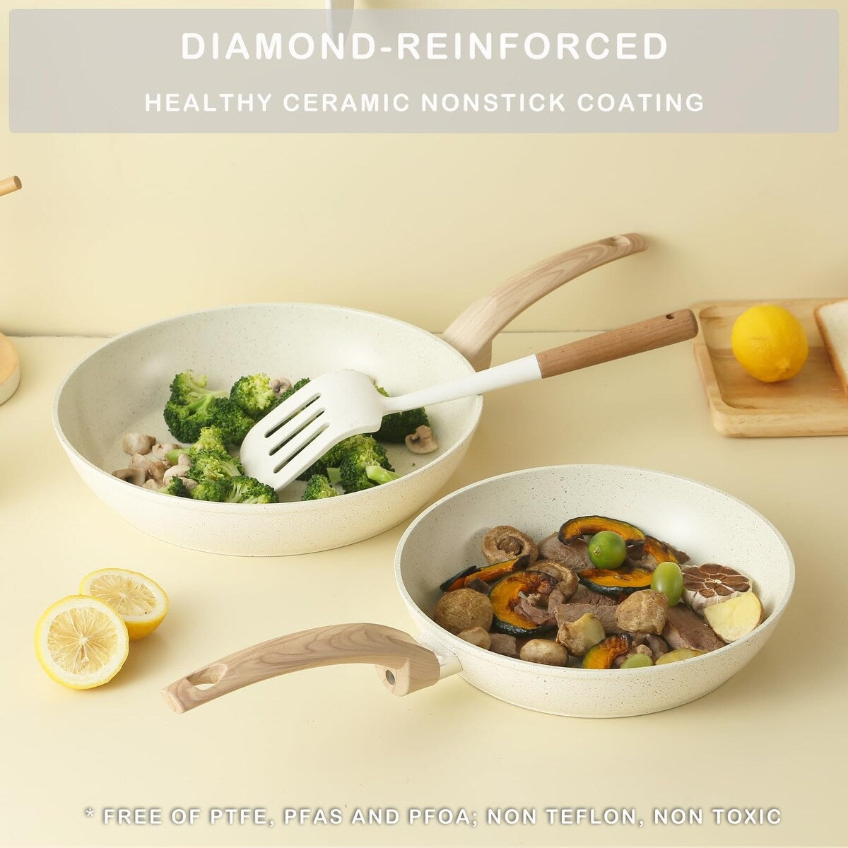 Ensemble de casseroles et poêles antiadhésives, batterie de cuisine en céramique antiadhésive comprenant poêle à frire, casserole, sauteuse et cocotte.