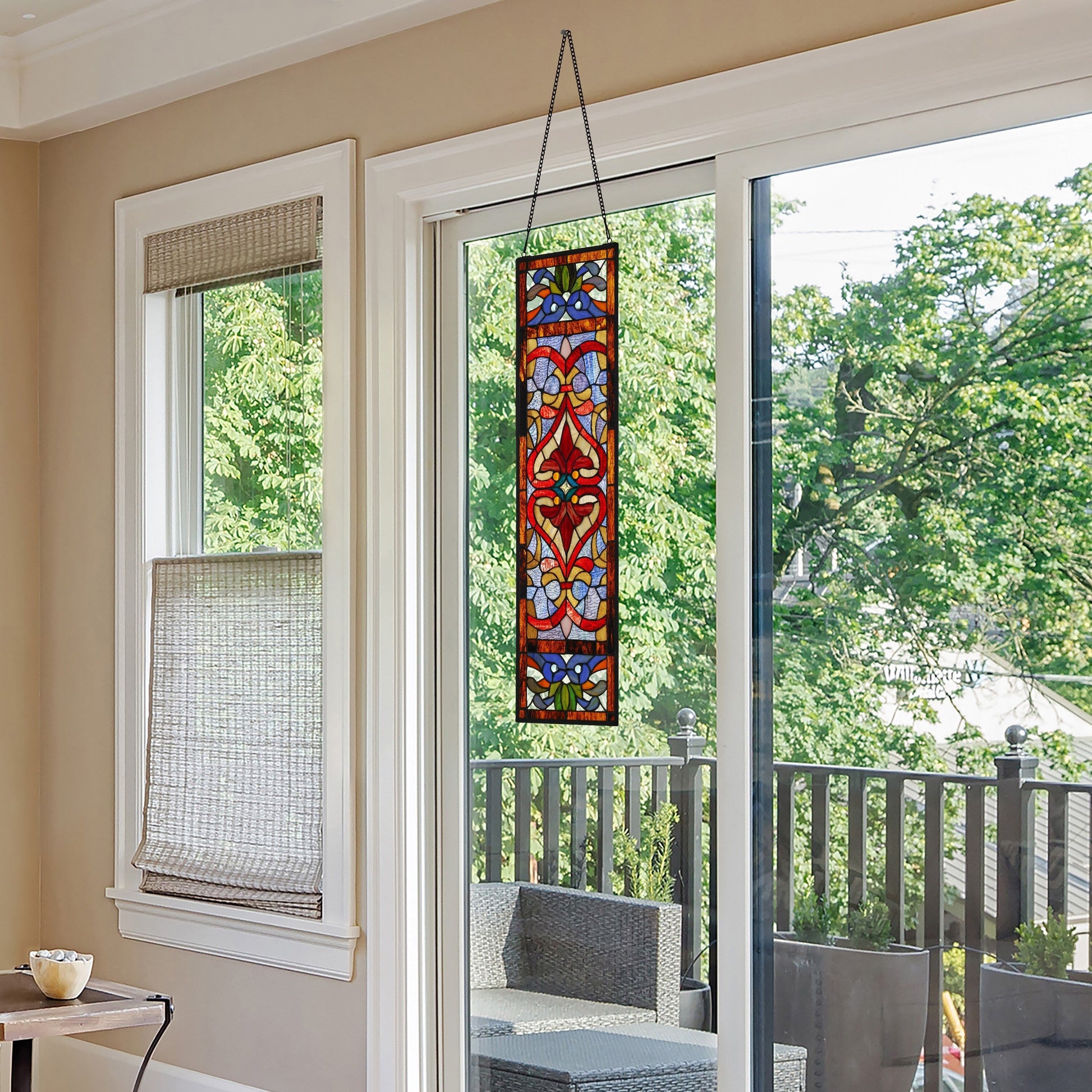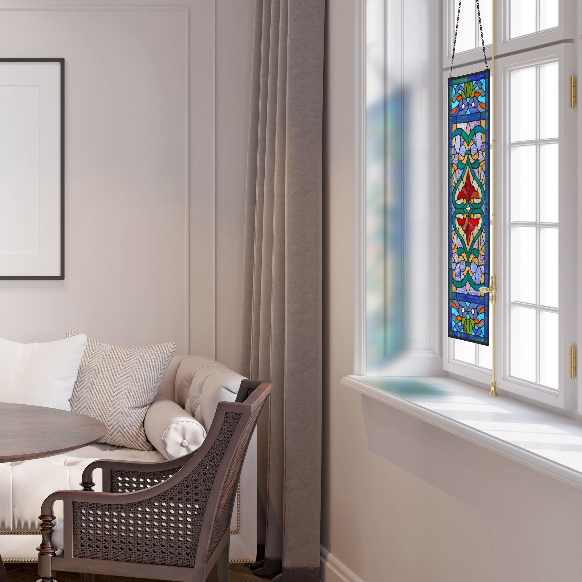 Apportez intimité et beauté à votre intérieur avec ce vitrail de style victorien signé River of Goods. Son motif exquis de fleur de lys est réalisé artisanalement avec des teintes bleu vif, turquoise et rouge qui captent les rayons du soleil et diffusent une lumière douce et agréable dans toute la pièce. Ce panneau est fourni avec une chaînette décorative pour une installation facile et peut être utilisé comme attrape-soleil, décoration murale ou placé près de votre porte d'entrée. Faites plaisir à vos proches avec ce magnifique vitrail qui apportera chaleur et gaieté à votre intérieur.