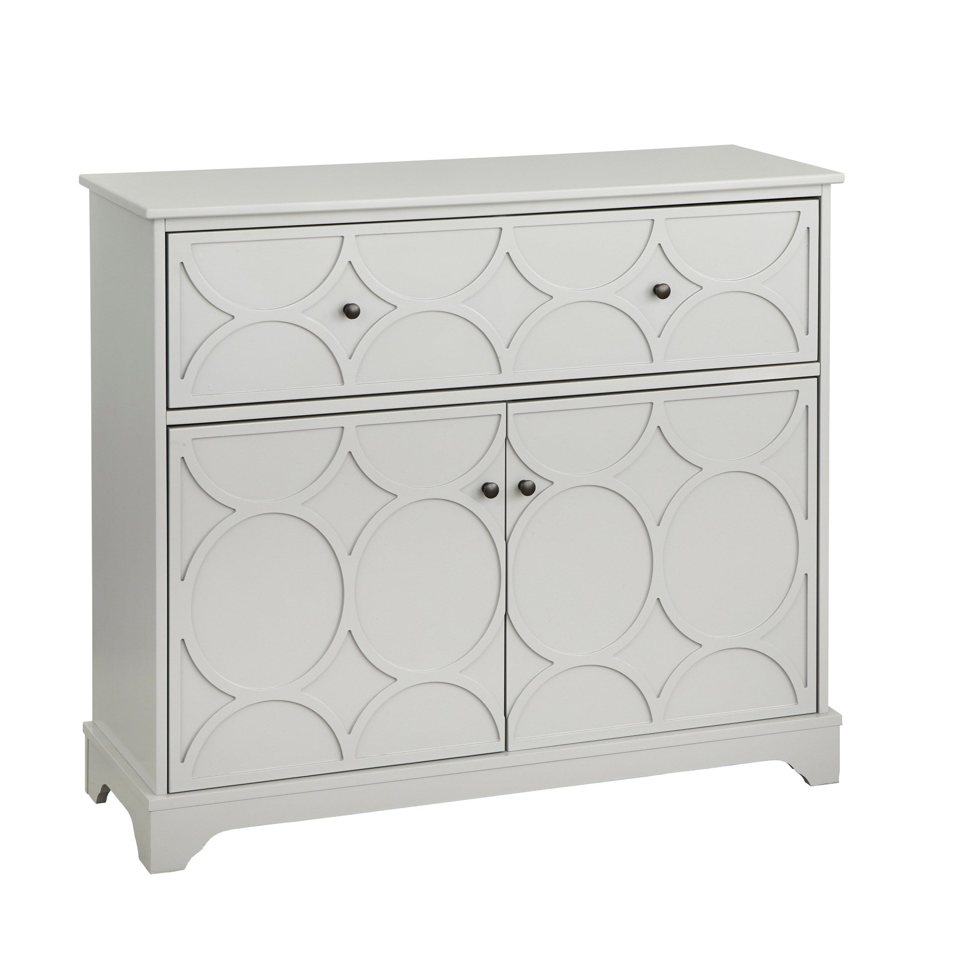 Désencombrez votre salle à manger avec le meuble à façade circulaire Dawson de Simple Living. Disponible en quatre finitions (gris anthracite, blanc, vert lys ou bleu nuit), ce meuble arbore des motifs circulaires sur ses panneaux avant pour une touche esthétique. Il est doté d'un tiroir supérieur et d'un compartiment inférieur spacieux avec une étagère réglable, vous permettant ainsi de ranger facilement vos ustensiles de cuisine. Fabriqué en MDF, ce meuble est également équipé de poignées noires pour une ouverture et une fermeture aisées.