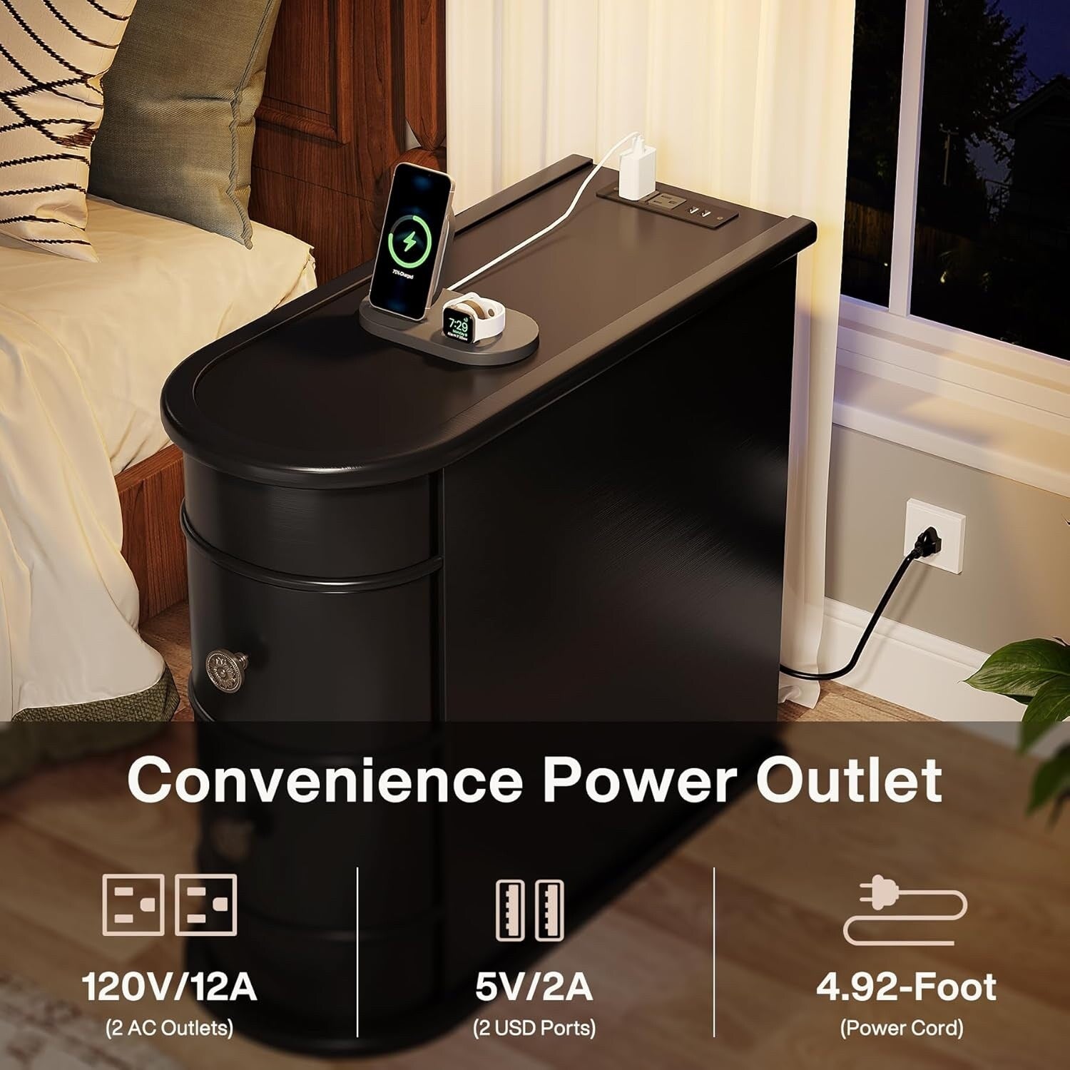 Table d'appoint en bois massif, table d'appoint étroite à deux tiroirs