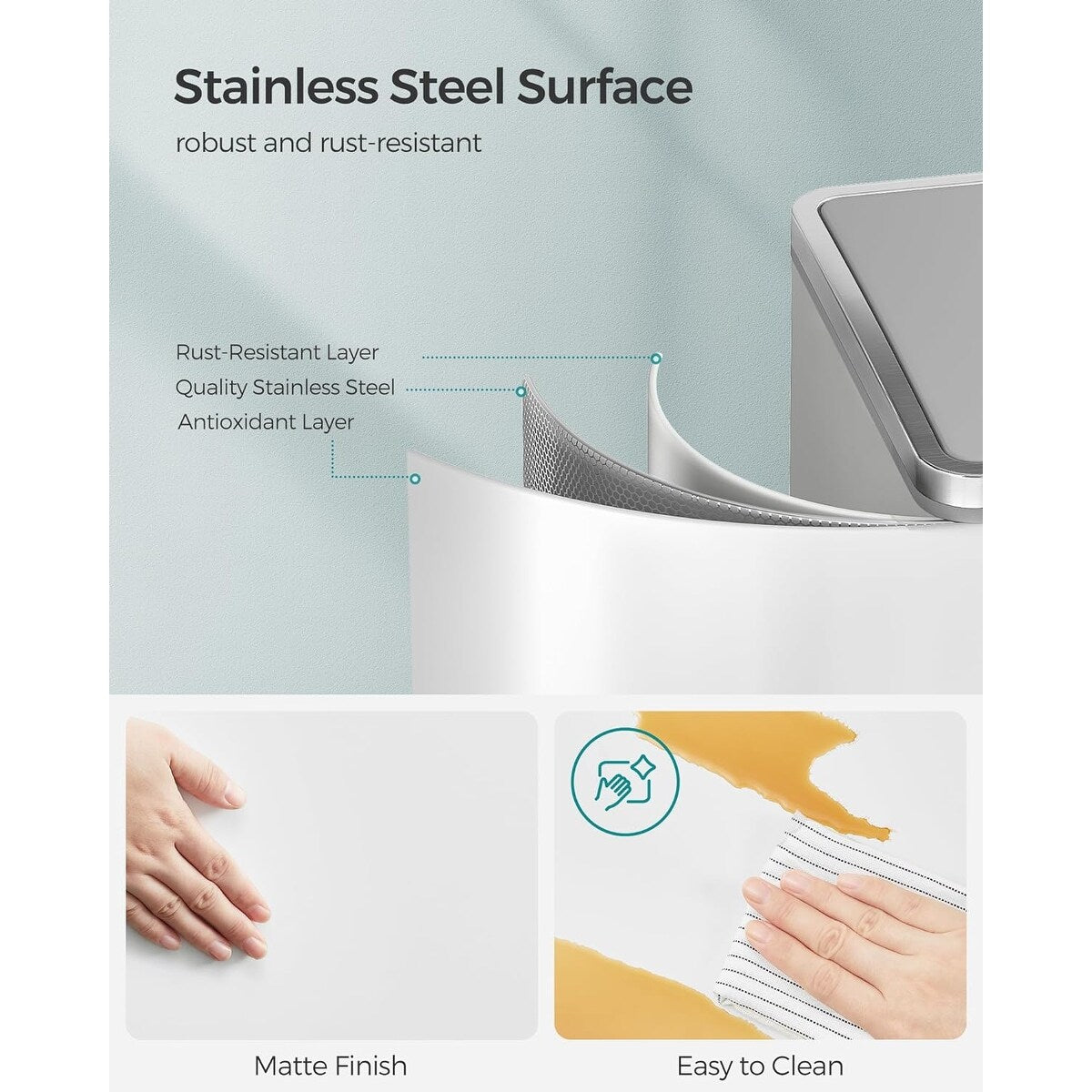 - [Robuste et douce] Le corps rigide en acier inoxydable de cette poubelle résiste à une utilisation durable ; le couvercle à fermeture douce garantit un environnement paisible, sans claquement bruyant.