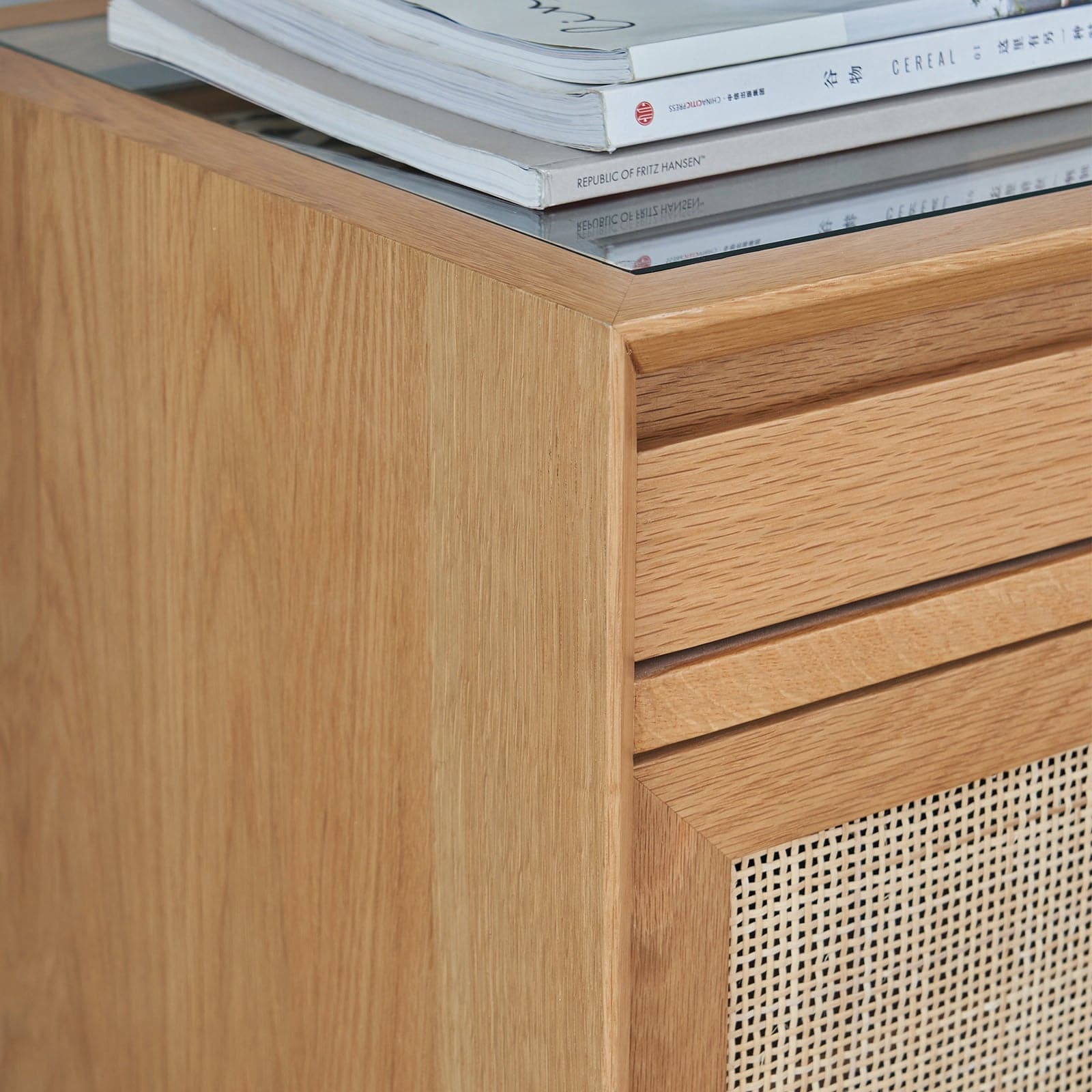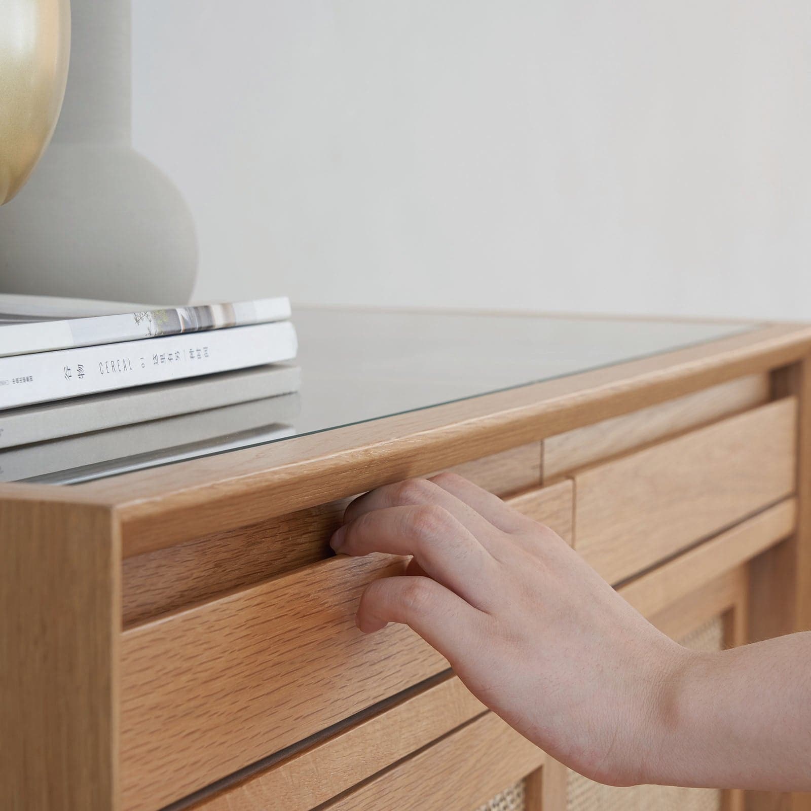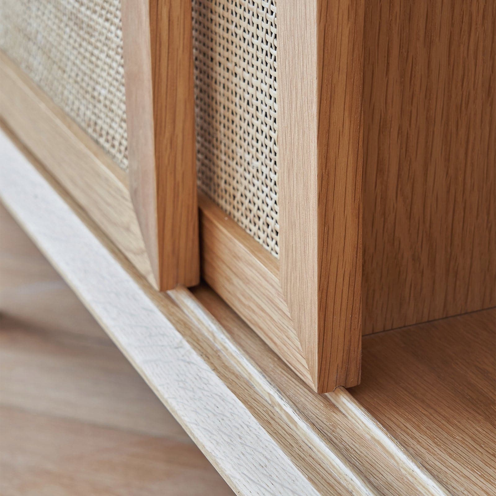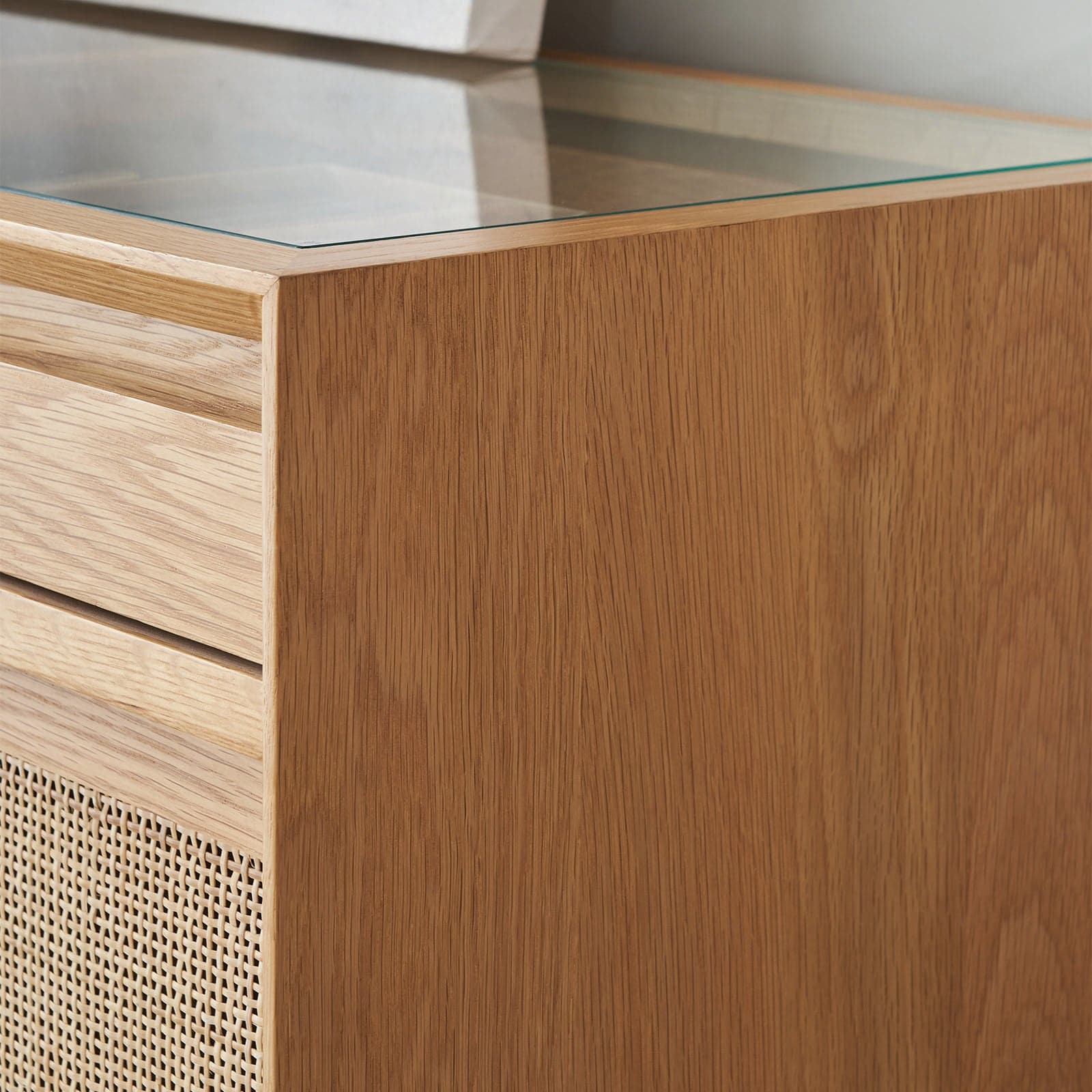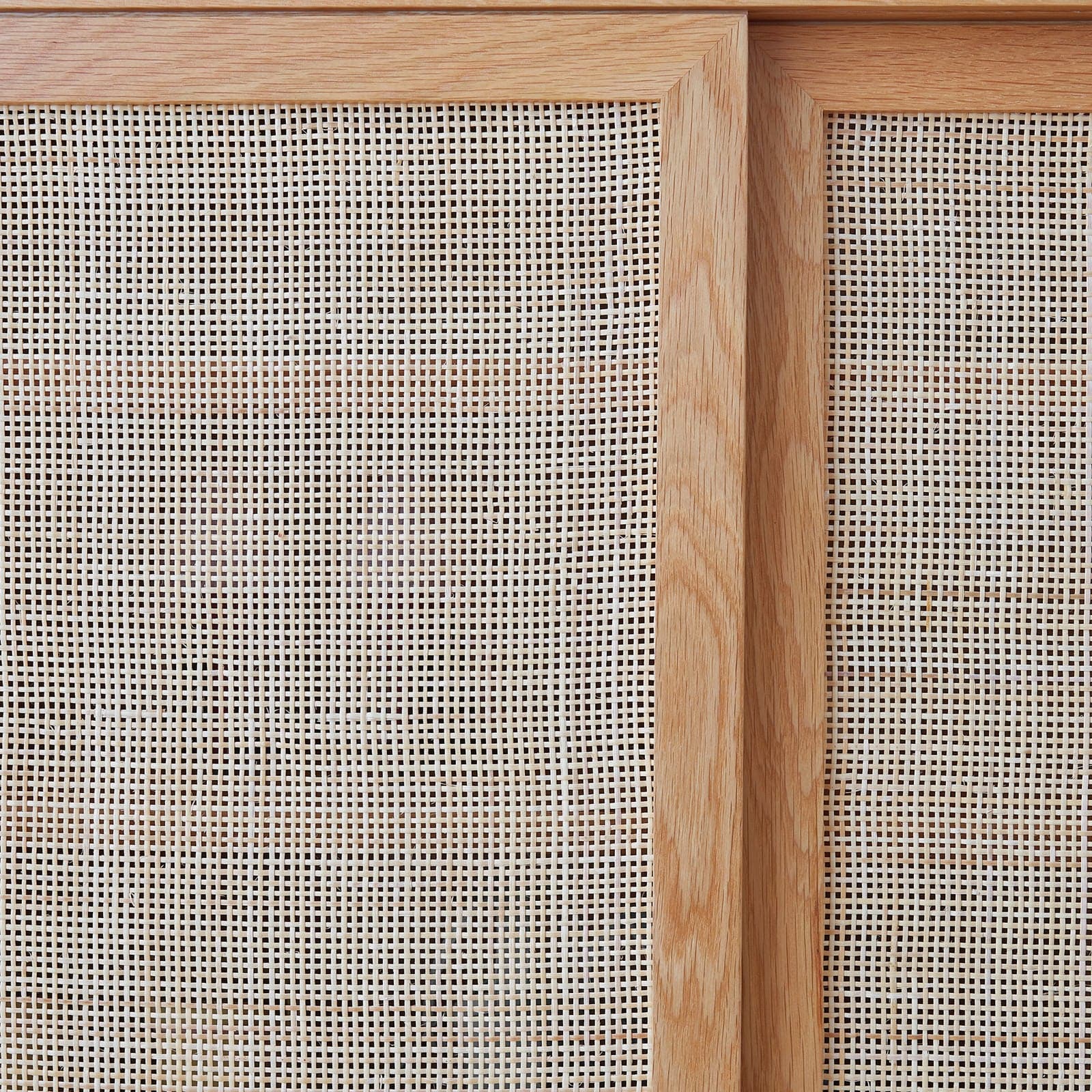Buffet Torii / Portes en rotin tressé et plateau en verre